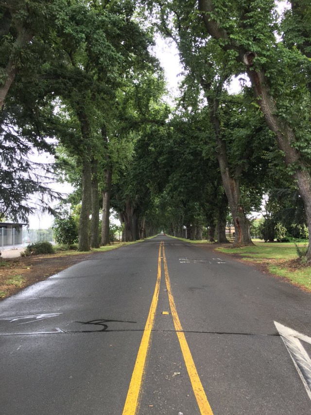 The rest of the group carried on towards the actual wineries loop. Before getting to the trail you ride down Oak Avenue which is lined with these huge Oak Trees that were planted in 1874.