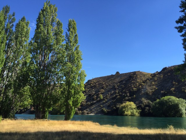 Albert Town is the confluence of the Clutha and Hawea Rivers and where we started our ride along the Clutha River Outlet Track around the edge of Lake Wanaka into Wanaka.  This track is about 13km.  Lake Wanaka and it’s surrounds are stunning and the clear blue skies enhanced that even further.
