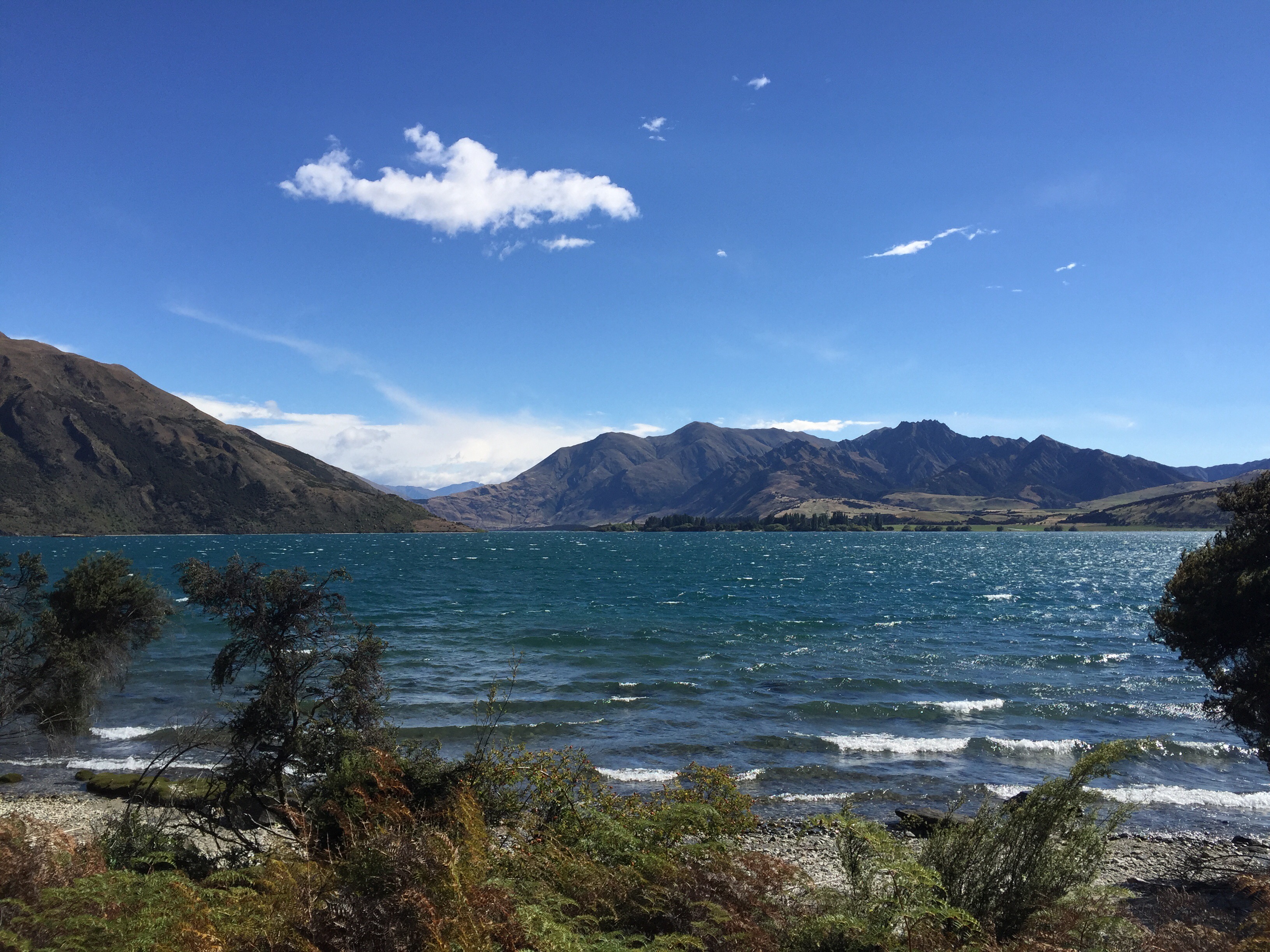 After some sustenance in Wanaka and the ever increasing winds we decided to do the Glendhu Bay Track in reverse – Glendhu Bay to Wanaka.  This track winds its way alongside Lake Wanaka and we felt pretty exposed in places.  It was also quite a challenging track with a few climbs and steep descents.