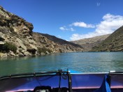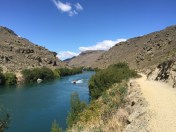 The first part of the trail is 10km in length and the views are spectacular – you really get up close and personal with the River. The middle section of the trail is impassable at Doctors Point so we had arranged for Lawrence from Clutha River Cruises to transport us and our bikes by jet boat 12km down the river. We had to split into two groups. Karen, Ross, Andy and I were in the second group – we got to Doctors Point just in time to see the first group whizzing around in the River.