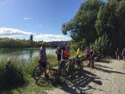 The Roxburgh Gorge Trail was opened in October 2013. The trail starts at Alexandra’s old stone bridge, which sets a flinty tone for the first section of the trail which passes through the gorge’s narrow gates, flanked by bluffs almost 350 metres high in some places. Despite rocky terrain, riding is made easy via a wide, smooth trail with a few gradual climbs. Unfortunately it wasn’t a smooth ride for Steve Impey who managed to become separated from his bike coming down a hill. His knee started to swell so he decided it was probably best to turn back and take a ride in the van.