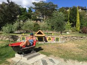 We rode down into the Roxburgh Dam Village to Lake Roxburgh Lodge which was our accommodation for the night. It is a lovely spot and the beers were flowing nicely as we enjoyed the garden at the Lodge. Cheryl, Karen & I decided to go up to the dam and have a swim. I had really enjoyed my swim earlier in the day. We met a couple of local kids who had been enjoying an afternoon swimming in the dam – they were very chatty and gave us an insight into their lives living in the area. We gave them a ride back to the Village which they were very grateful for.