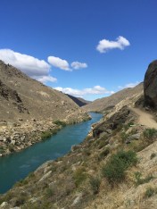 Lawrence dropped us at Shingle Creek jetty where the trail climbs gently to follow a series of river bends that offer ever-changing views of the landscape. The river slows and widens as it reaches the Roxburgh Hydro Dam, the dramatic industrial monolith that signals the endpoint of the trail. There are some cool switchbacks that climb gently to the vantage point over the Dam.