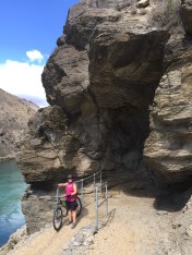 Lawrence returned after dropping the first group off and loaded our bikes onto the boat. He gave us some background information in relation to the gold rush days in the area and pointed out the fascinating gold rush-era relics including schist huts and water races built by the Chinese miners. There was even a little schist hotel and pub still in tact. The scenery was amazing and I was thinking that this trail would have to be one of the best rides I have done.