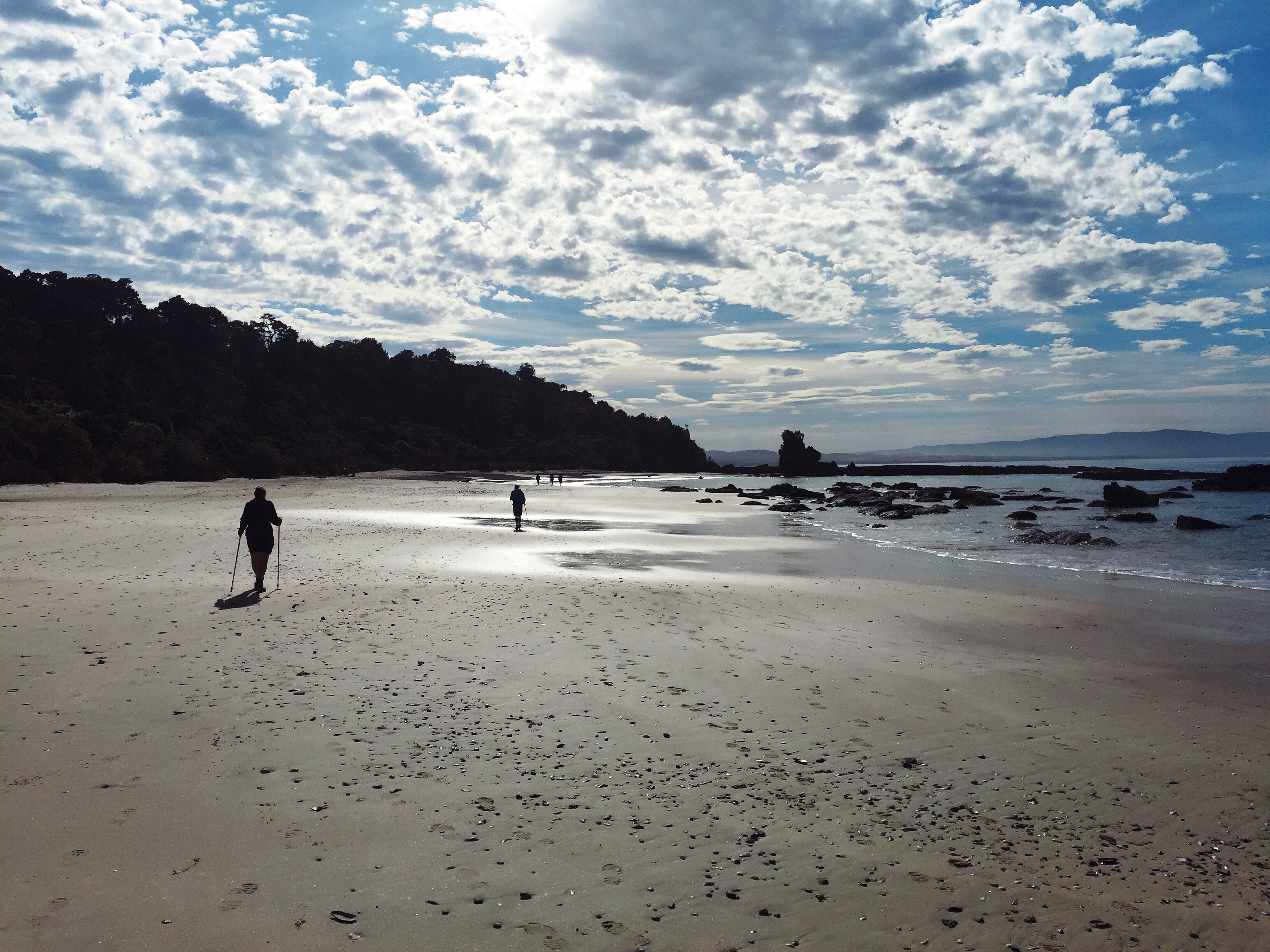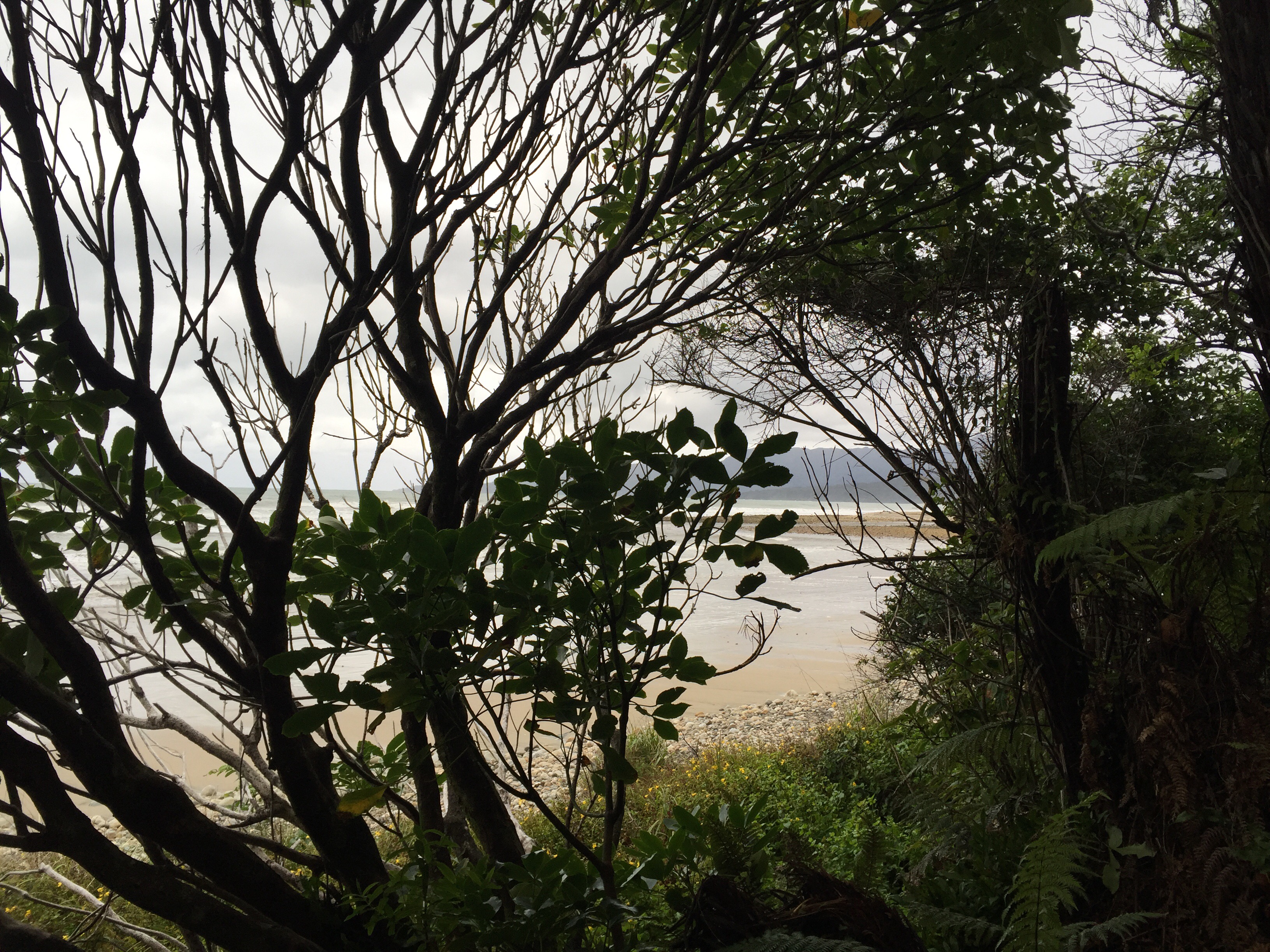 After another breakfast on hot porridge and brown sugar we started our last day on the Hump Ridge. The track undulates gently through the bush although you can see glimpses of the coastline. We then came out at Blowholes Beach before going back into the bush. We then arrived back at Flat Creek, the junction where we had turned off towards Okaka Lodge on day one.