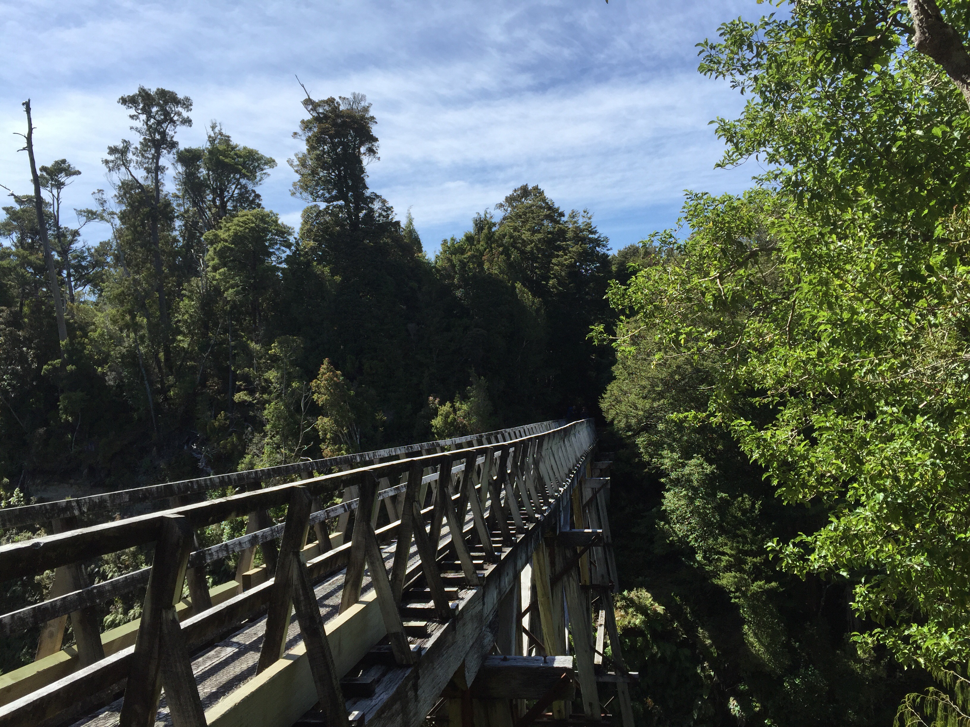 The largest viaduct is the Percy Burn Viaduct which is 125 metres long and 36 metres high. It is thought to be one of the biggest wooden viaducts in the Southern Hemisphere. Unfortunately we had to climb down into the ravine and walk underneath it rather than crossing it. After coming back up onto the track we had about seven kilometres to go.