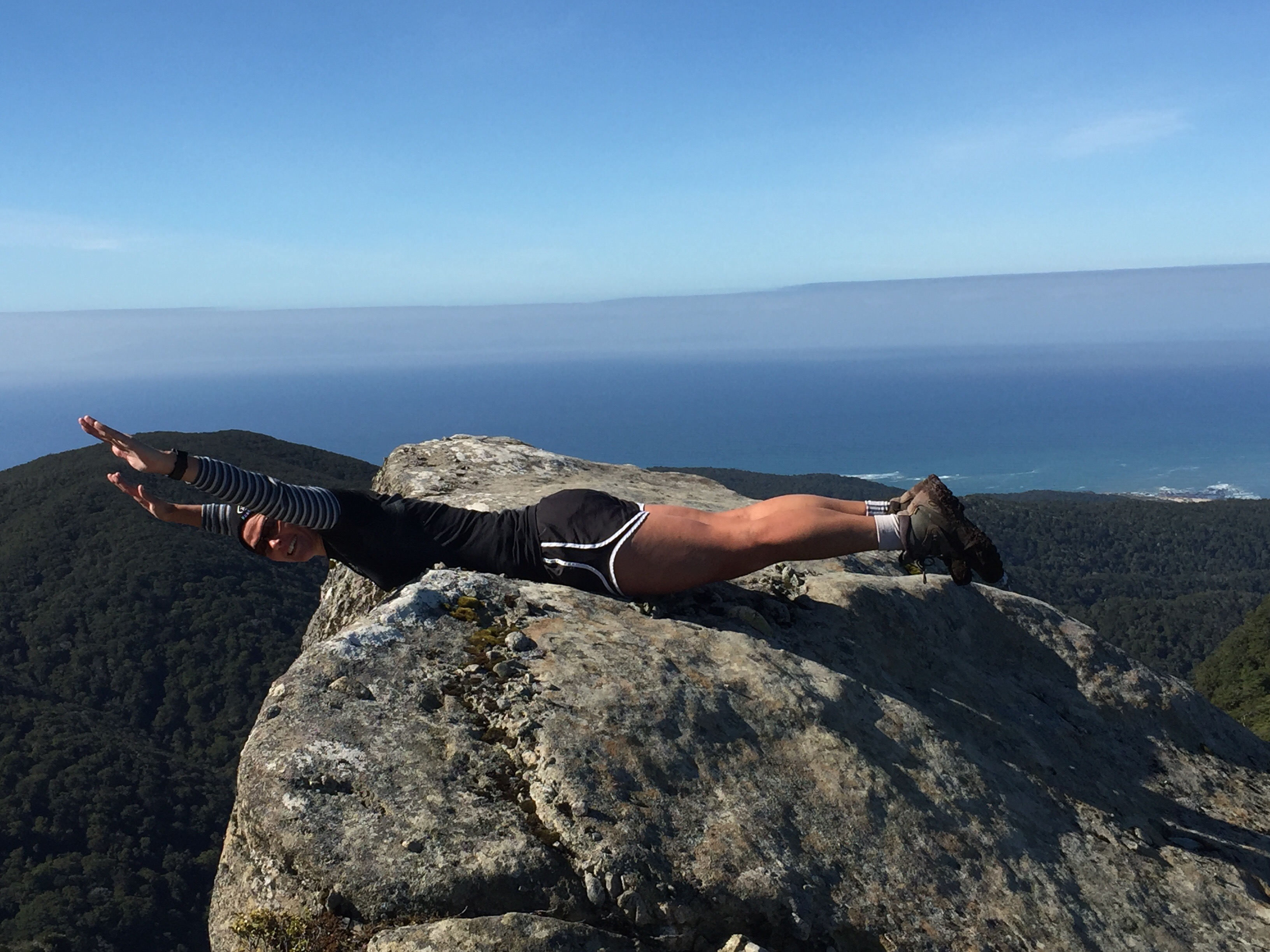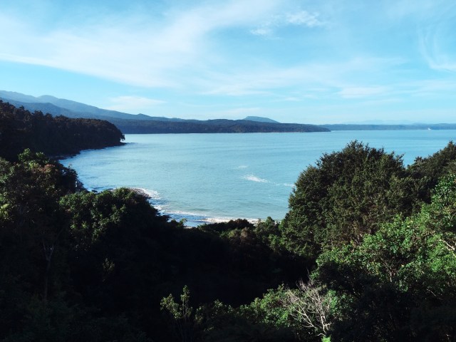 After a breakfast of hot porridge and brown sugar we packed up and hit the track. The gist of today was a walk along the ridge line before starting our descent back to sea level through the enchanted forest and then along the old railway line. There was a clear blue sky and the vistas were spectacular – we were very fortunate with the weather because today was the day that you got to see the most. After the first ten kilometres on day one you were in the bush with no views so it didn’t matter that it was overcast.
