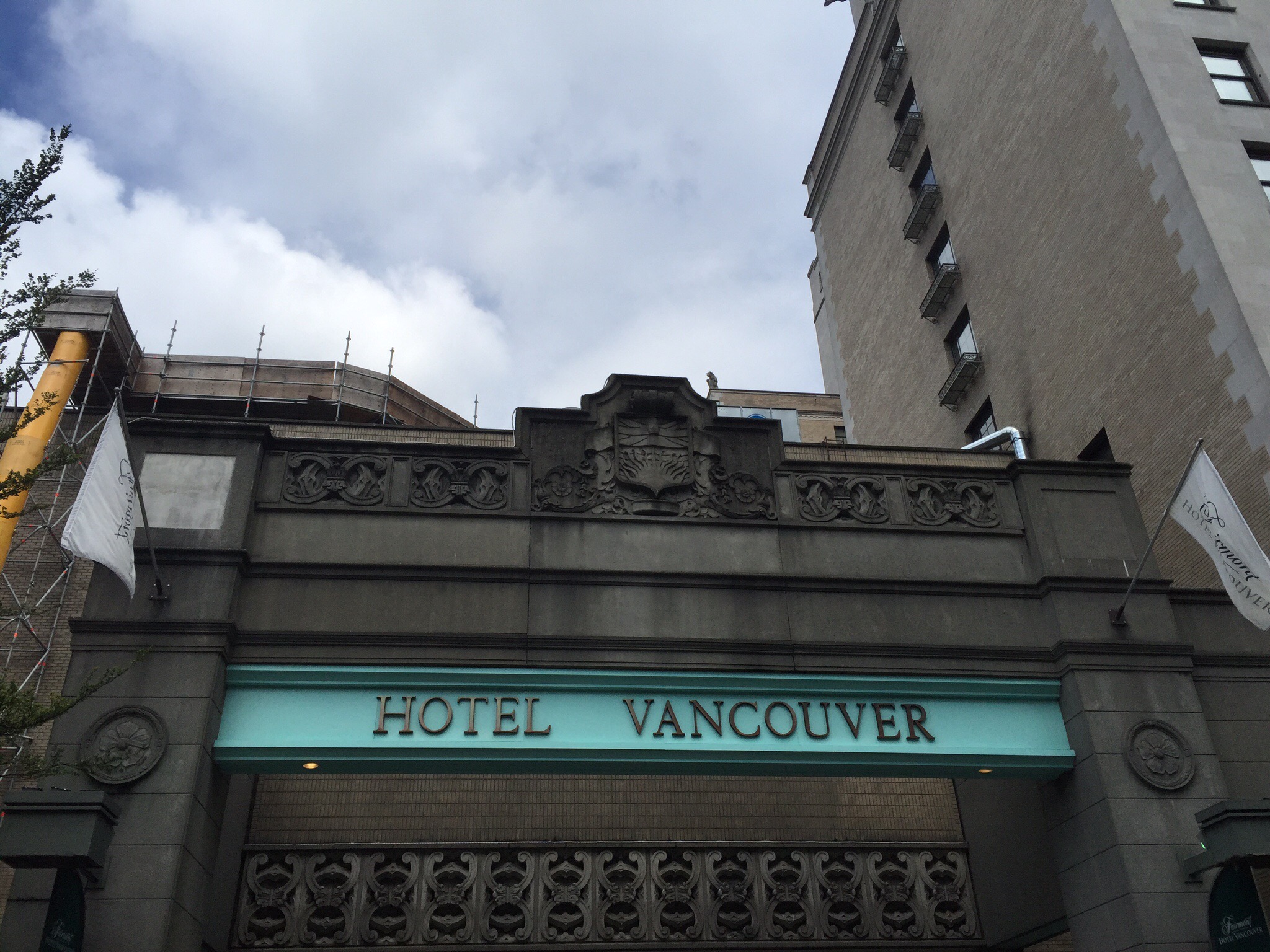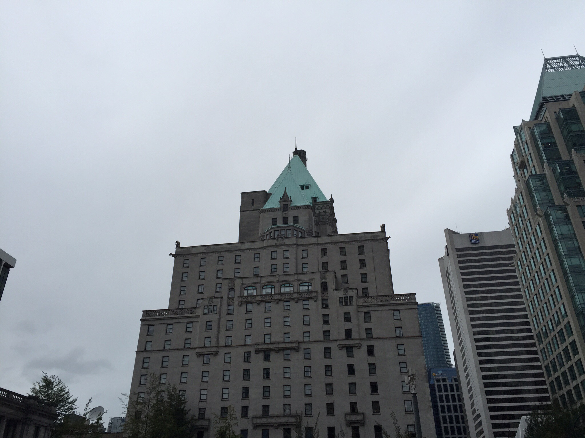 Our first stop was The Fairmont Vancouver Hotel.  Some of Canada’s most unique features are the majestic railway hotels that were built across the country by the Canadian Pacific and the Canadian National Railways. For their time, these hotels were miracles of construction and engineering. Everything that went into them was the biggest and best of their time and they have become very much a part of Canada’s national heritage and identity. The Hotel Vancouver was constructed in the style of a 16th century French Chateau, heavily favoured by Canadian railway companies at the time. The hotel stands 111 metres high and was the tallest building in the city when finished in 1939.  It cost CAD12 million to build and took 11 years to build because construction was halted for five years during the Great Depression.