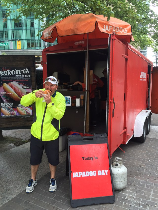 We saw a number of food trucks around the city – these are a new addition and are proving very popular. They cover a wide range of ethnic foods. Steve had spotted the Japadog Truck which sold hots dogs using Kurobata Pork which comes from a rare breed of pigs called Berkshire. The Berkshire breed is well documented as having superior meat quality when compared to other commercial pig breeds. The most popular Japadog is served with Japanese Mayo and seaweed. The verdict – pretty good 🐷 👌🏼.