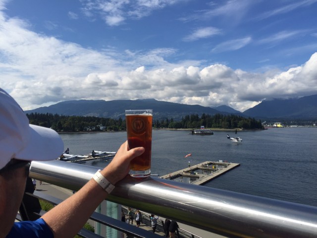 After the tour we had a wander around the shopping district which is very good.  It was then time for some liquid refreshments and we managed to get the best seats in the house at the Tap & Barrel.  They have a verandah that overlooks Coal Harbour which is home to the Sea Plane terminal.  This Sea Plane terminal is the 17th busiest airport in Canada.  The capital of Vancouver, Victoria, is located on the southern tip of Vancouver Island.  It can take about 5 hours to get here by road and ferry so it is much more time efficient to take a seaplane – it takes about 2o minutes!  There are many islands out from Vancouver, hence the use of seaplanes.