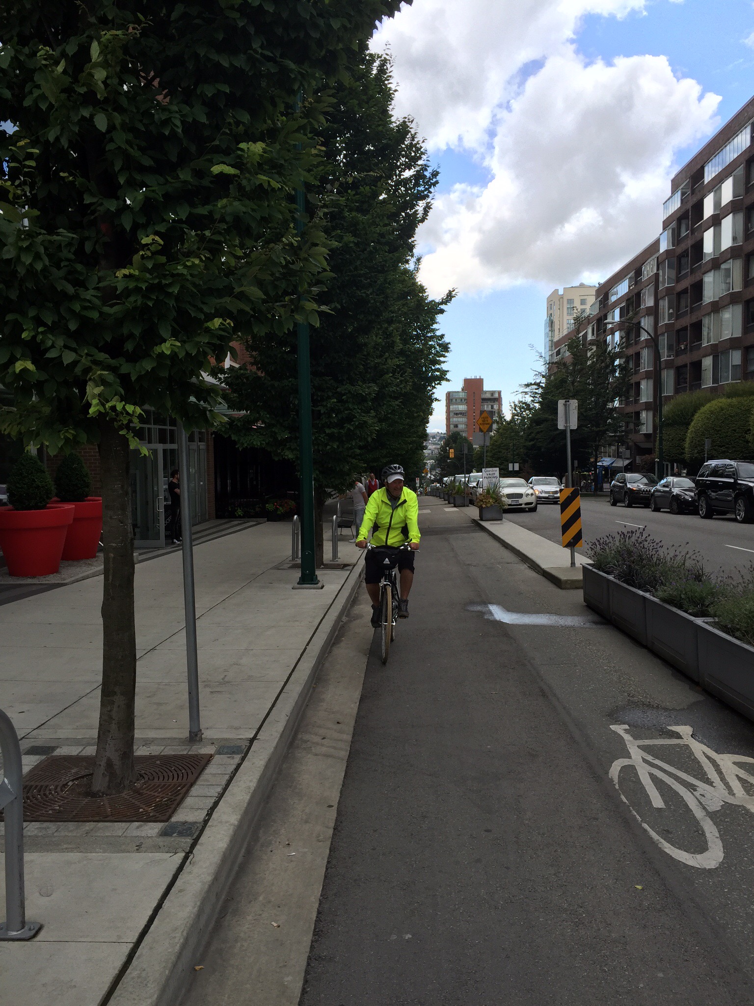 After the tour we walked to the bike hire shop – Steve had checked it out a couple of days prior and was quite excited because the bikes were electric, or so he thought.  When we got to Cycle City Tours on Hornby Street he was bitterly disappointed that he had been mistaken – there were no electric bikes in sight.  Not sure what he thought he saw the other day but just confirms that he lives in a state of delusion at times : ). They had only been open for a month and all the bikes were brand new.  Bikes and helmets acquired and we were off.  They have all these bike lanes in Vancouver which are curbed off from the road – they even have their own traffic lights. We rode through the city to Canada Place and the start of the Seawall. I told Steve that I was going to be stopping off along the way to take photos etc.. To me that meant, don’t go too far ahead so we can explore the park together. To Steve that meant great, how fast can I do the Seawall – anyone would think he was doing the Tour de Vancouver. So we cycled the Seawall separately and I didn’t take as many detours as I would have like in case I missed him coming back down to another spot because he was waiting for me – yeah right!