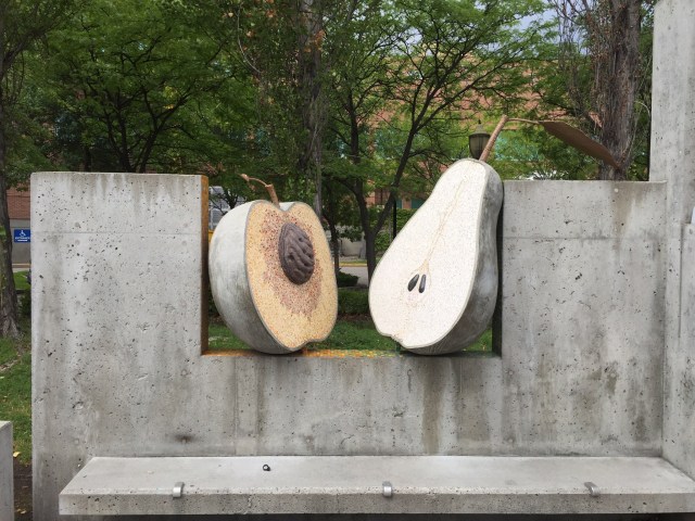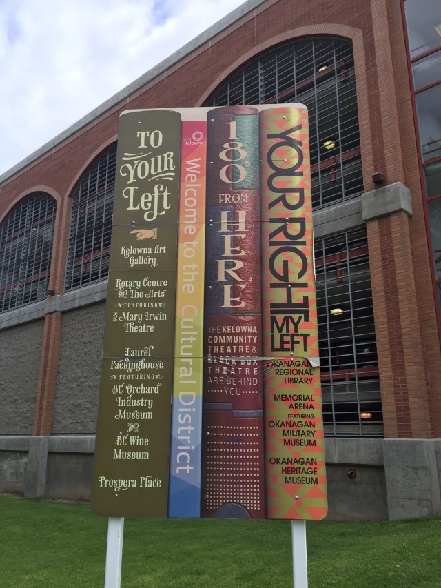 After discussing the history of the orchard and wine industries we went out to explore the Cultural District. Robin is very passionate about the culture and is on the Board of the Rotary Centre for the Arts. The building that houses the Rotary Centre for the Arts is actually built around and over the old Growers Supply agriculture warehouse. Beams, walls and flooring from the original building are still evident. This multi purpose facility openings in 2002. It houses a 326 seat theatre, rehearsal hall, eight artist studios, an art gallery, a dance studio, rentable space and a bistro. It brings together the performing arts and the creative arts.
