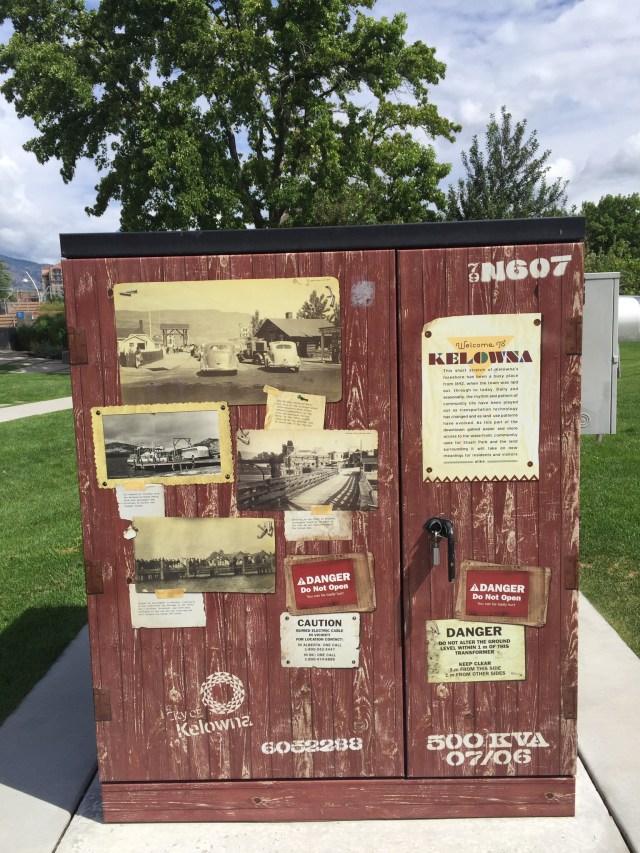 Bear is a tribute to Kelonwa’s settlement on the shores of Lake Okanagan. The theme of the artwork is a Grizzly Bear – “Kelonwa” being an English translation of the Okanagan / Syilx First Nation word for “Femal Grizzly Bear”. Within the Bears body are symbols that represent periods of Kelonwa’s history.