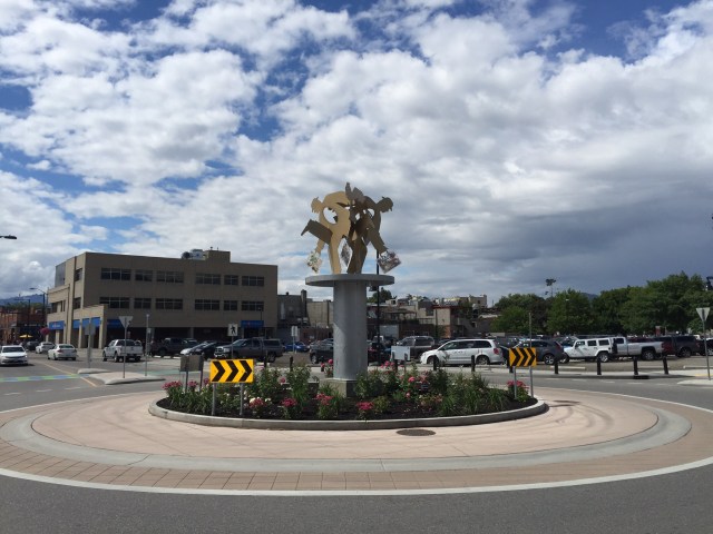 After discussing the history of the orchard and wine industries we went out to explore the Cultural District. Robin is very passionate about the culture and is on the Board of the Rotary Centre for the Arts. The building that houses the Rotary Centre for the Arts is actually built around and over the old Growers Supply agriculture warehouse. Beams, walls and flooring from the original building are still evident. This multi purpose facility openings in 2002. It houses a 326 seat theatre, rehearsal hall, eight artist studios, an art gallery, a dance studio, rentable space and a bistro. It brings together the performing arts and the creative arts.