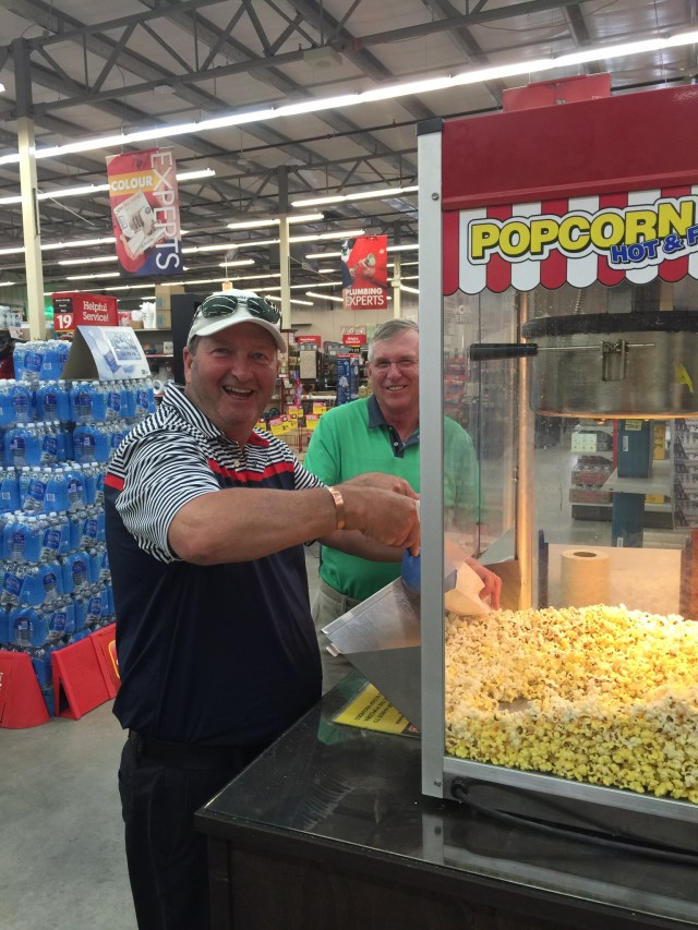 On our first morning at Diane & Ken’s we managed to break the shower rail.  That afternoon we took a trip to the hardware store – foreign hardware stores are to Steve what foreign supermarkets are to me.  He then discovered they had a big popcorn machine where customers could help themselves – we just about had to surgically remove him from the store.