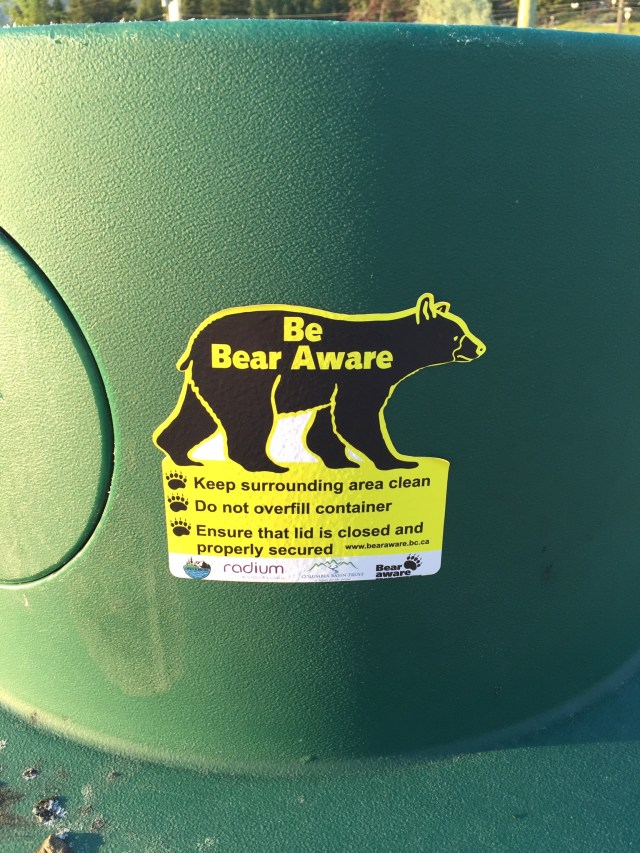 That evening we went to an Austrian restaurant in Radium for dinner called Helnas Stube. A Stube is a warm and cozy room – a place to enjoy the company of your friends and family. The Chef and his wife who are originally from Austria opened the restaurant in 1999. You can’t beat a good schnitzel and it was good! In the street outside the restaurant there was a large rubbish bin concreted into the ground with only a small flapped opening. On the side of the bin is a sign “Be Bear Aware” – these bins are designed so the Bears can’t get into them or knock them over.