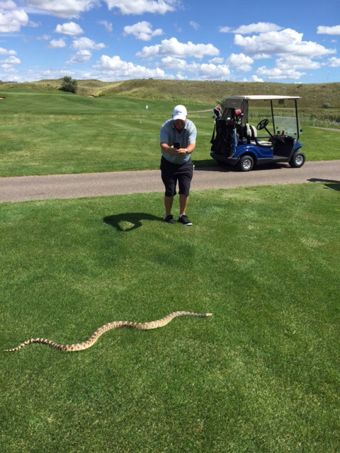Round four was played on Monday and again Pat & Kay joined us so it was boys and girls again.  The boys saw the resident Bull Snake on the second hole.  We were playing in front of them again but didn’t see it – thank goodness!