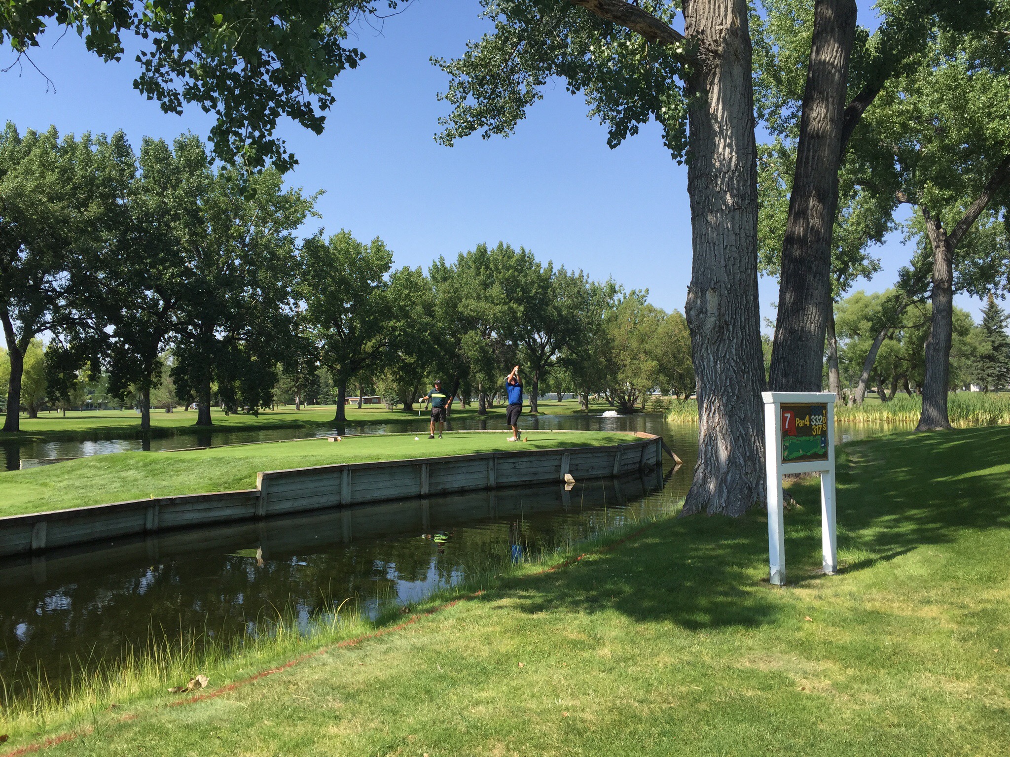 We got organised very quickly upon arriving at the golf course. It was hot – about 35 degrees! The course is very picturesque with lots of trees. After playing five rounds at Desert Blume which has no trees I had a bit of trouble on the first couple of holes but it sorted itself out.