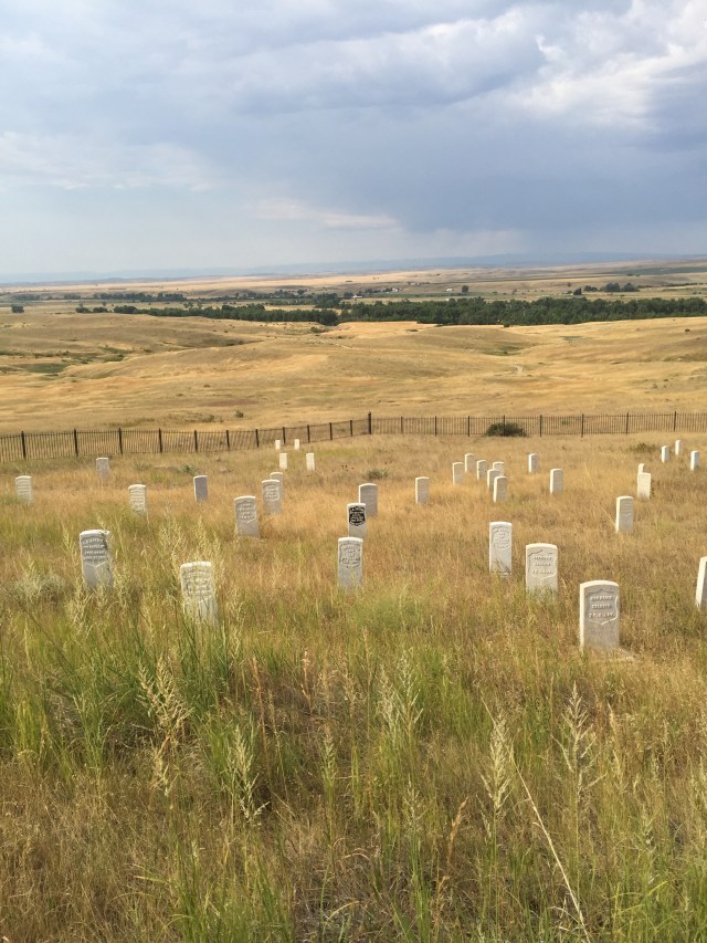 On our way from Billings to Sheridan we stopped off at the Little Bighorn Battlefield Monument. The monument sits in the middle of a huge expanse of prairie land just up from the Little Bighorn River and you can imagine the battle in the day. As well as the monument there is a Visitor Centre as well as a cemetery. It was really interesting and the reasons for the battle are similar the world over with the indigenous people being forced to change their traditional habits by the white people.