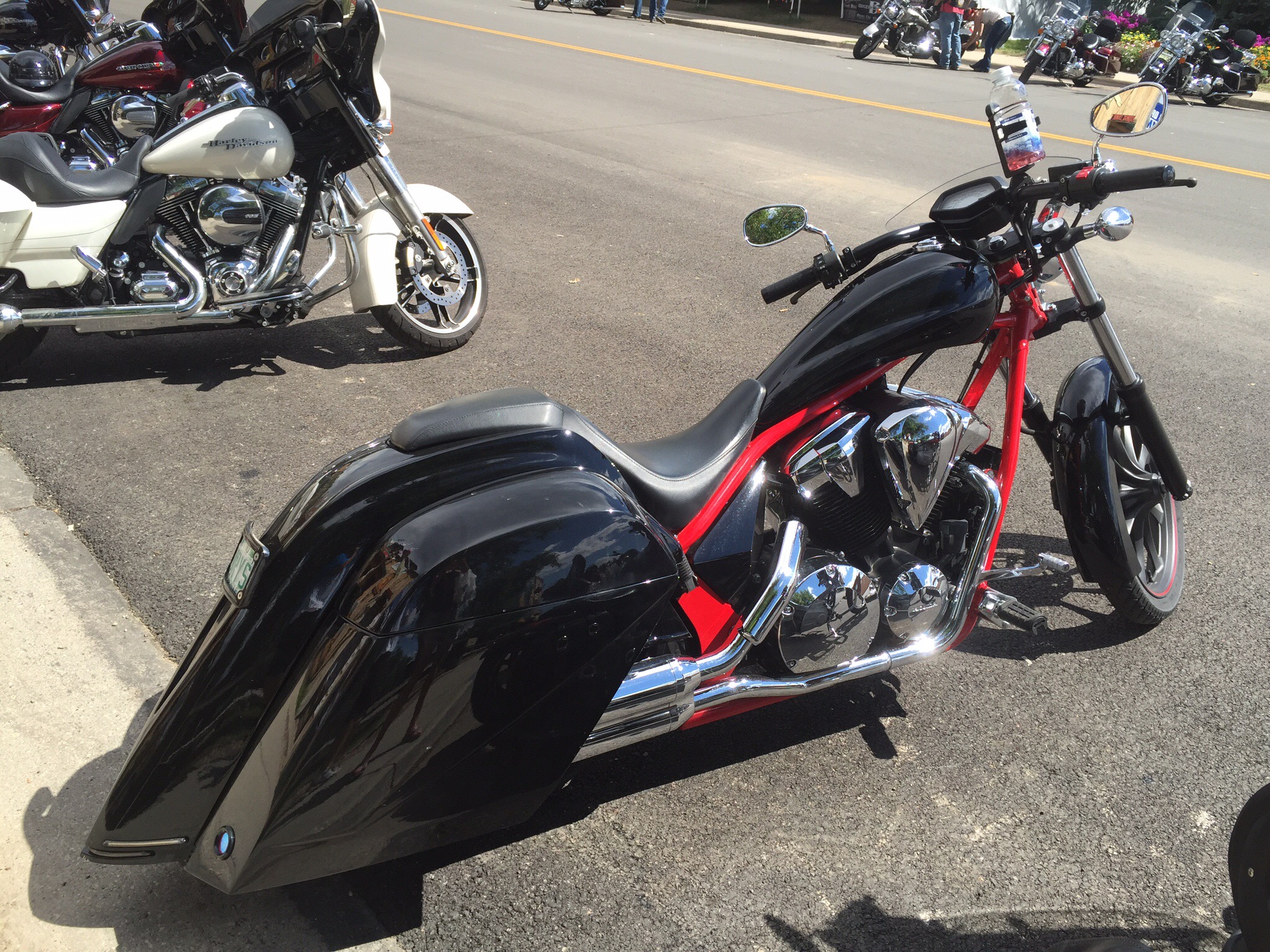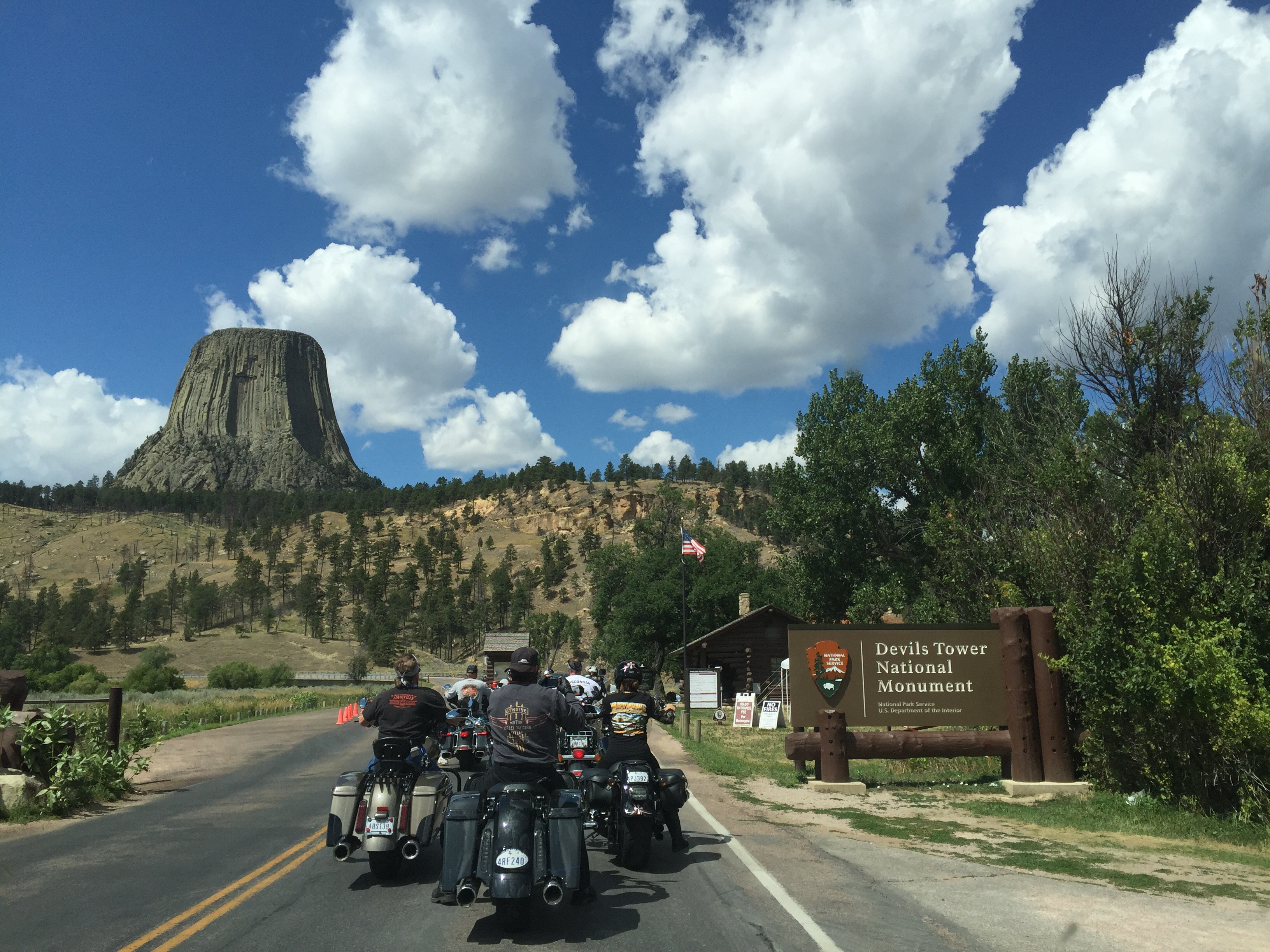 We left Casper and headed north east – today’s adventure was to check out the Devil’s Tower Monument before heading into Spearfish in South Dakota. The annual Sturgis motorcycle rally has been on in this area for the past week so there were a lot of motorcycles around. I was quite fascinated by all the bikes, outfits and people – this is a way of life for them and some of the bikes are pretty amazing. Most of them don’t wear helmets – apparently it is ony required by law if you are under eighteen.