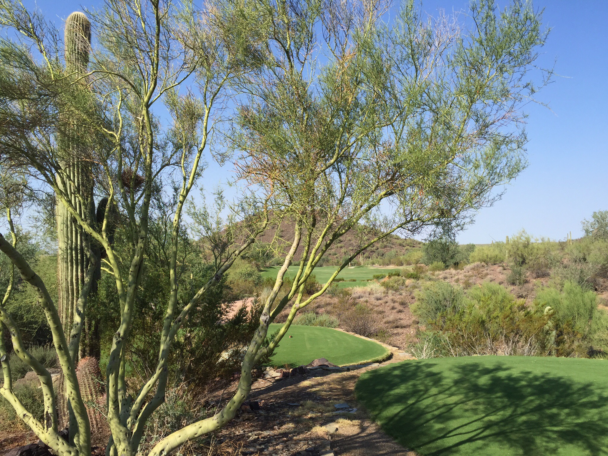 Ken told us that he had come across a rattle snake recently when he went into the desert to look for Mary’s ball.  Jeez I was really freaked out now – even walking to our tee boxes I was on high alert.  As we whizzed along in the cart I was constantly looking into the desert to see if I could see anything untoward but it be honest it would be pretty hard as they blend in with the environment which is why you don’t venture off the green stuff.
