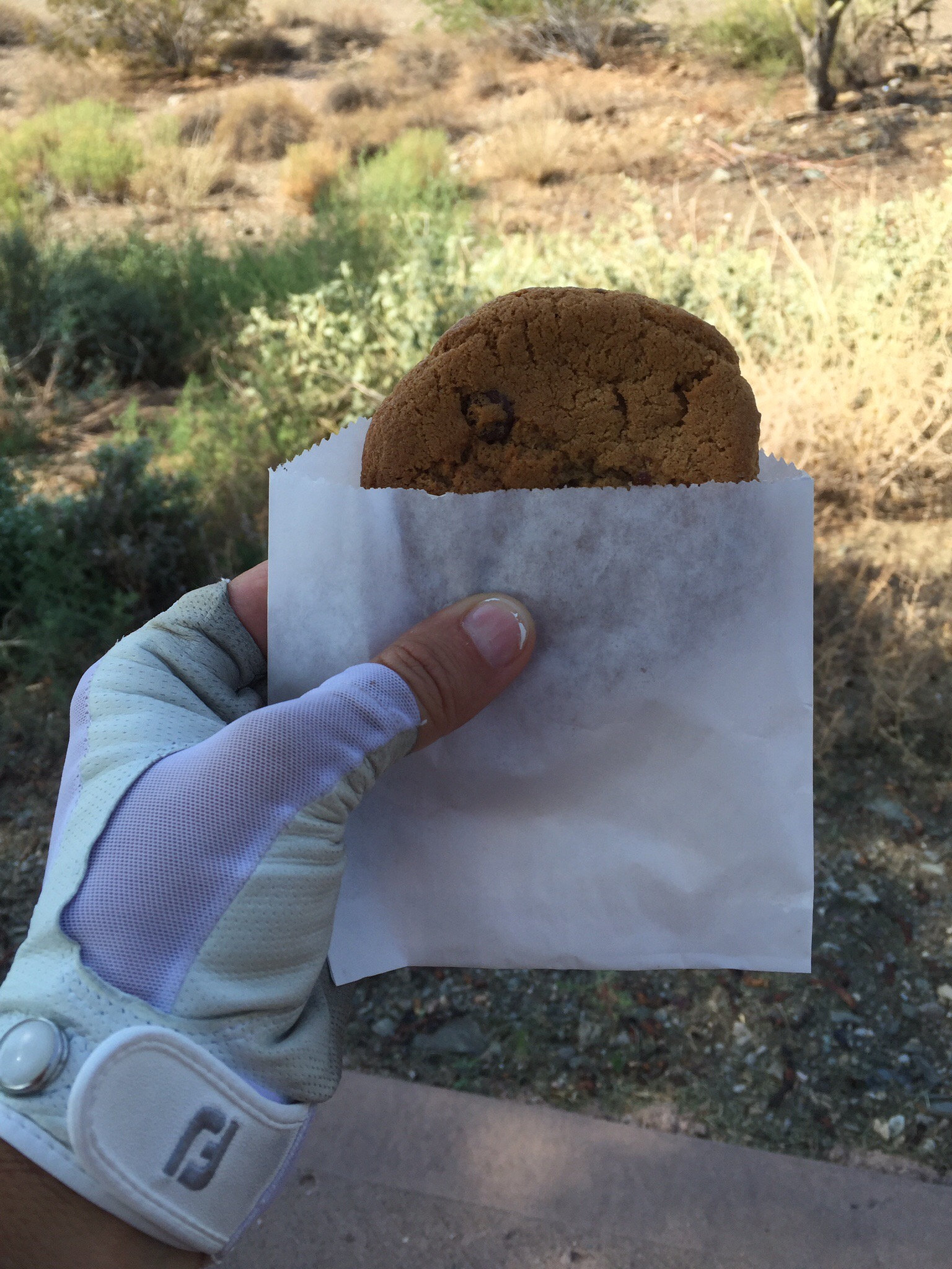 Crazy as we are we went back for a second round today getting up at 4.30am again!  Ken & Mary had booked a tee time and asked us to join them which was great.  It was quite overcast today so a bit cooler than when we played on Wednesday.  When we were driving back to the clubhouse Steve spotted a snake slithering across the road – it was just a common brown snake apparently – we watched it slither into the desert and it confirmed how well camouflaged they are – you wouldn’t have noticed it if you hadn’t followed it in there.