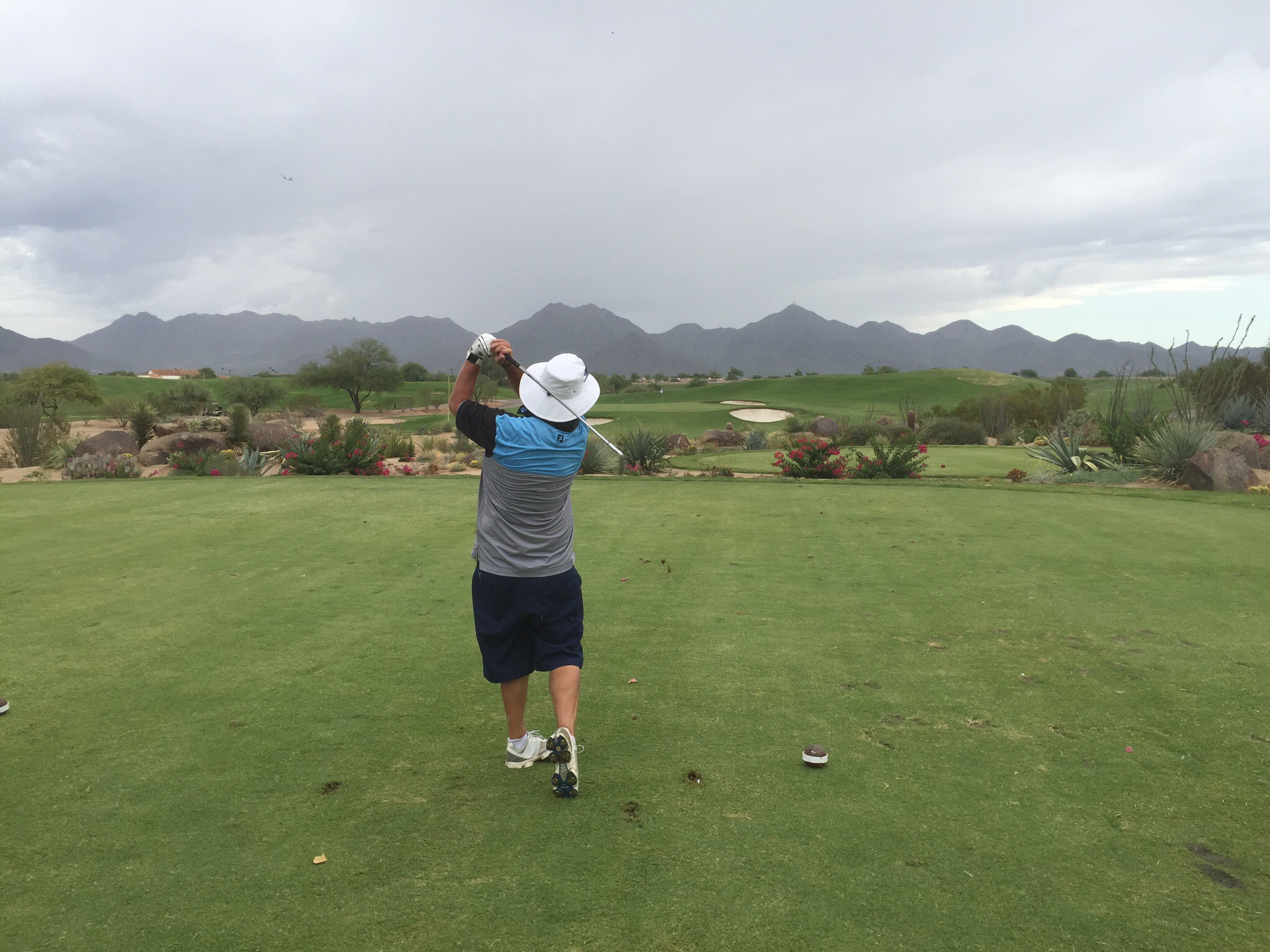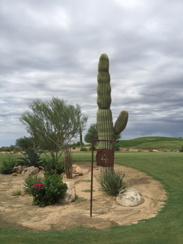 We had played this course about 6 years ago but it has undergone some extensive renovations since then. The City of Scottsdale began an extensive renovation of TPC Scottsdale’s Stadium golf course and clubhouse on April 1, 2014. The golf course project, led by architect Tom Weiskopf, included the relocation of four greens, resurfacing of all greens, reshaping and regrassing of all tee complexes, relocation and reshaping of all bunker complexes, replacement of cart paths, and re-landscaping of desert areas. The result is a golf course that’s more aesthetically pleasing to resort guests and strategically more challenging to PGA TOUR players during the Waste Management Phoenix Open.