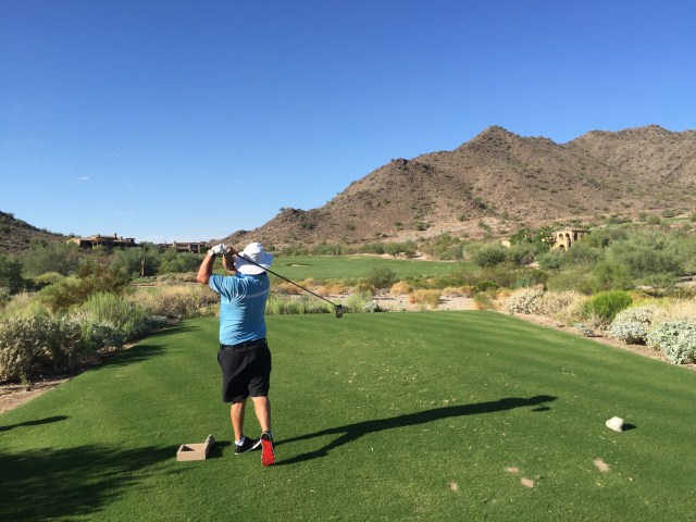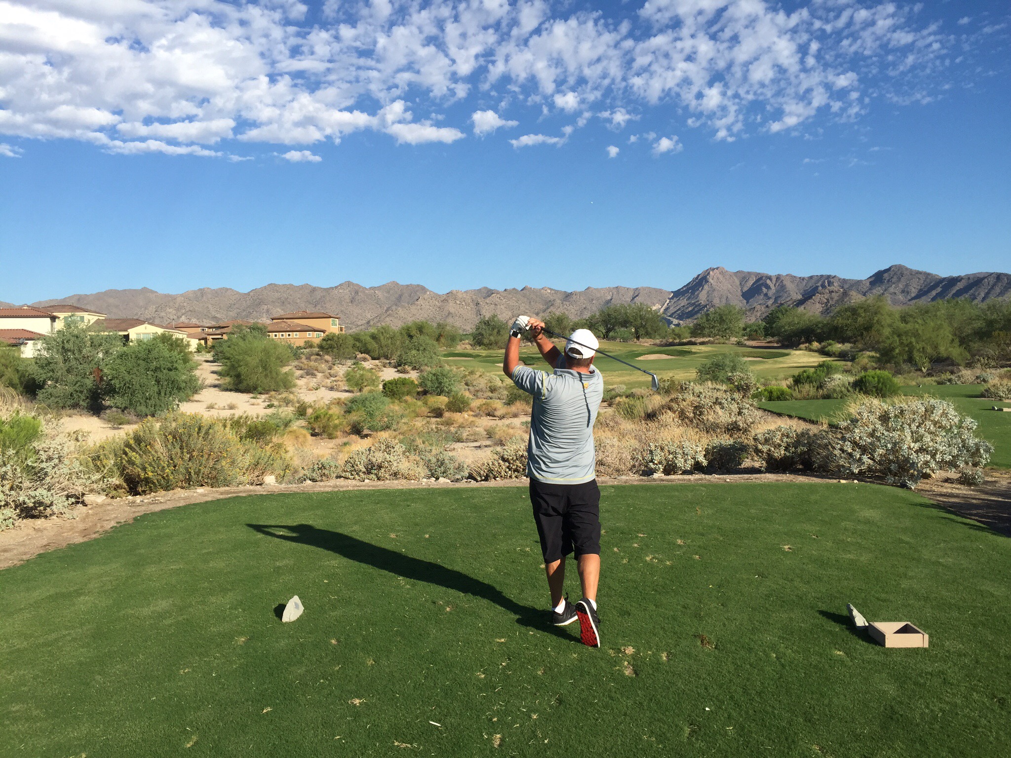 Well we took over a week to get here but it was worth the wait. We arrived in Phoenix on Monday the 22nd August and took advantage of a couple of golf specials elsewhere which kept on extending so it wasn’t until Tuesday this week that we finally made it to the Verrado Golf Club. Being right on our doorstep meant we didn’t have to get up in the middle of the night in order to make our early tee time : ). We had driven and walked past some of the holes so we were excited to get out there and see what it had to offer.