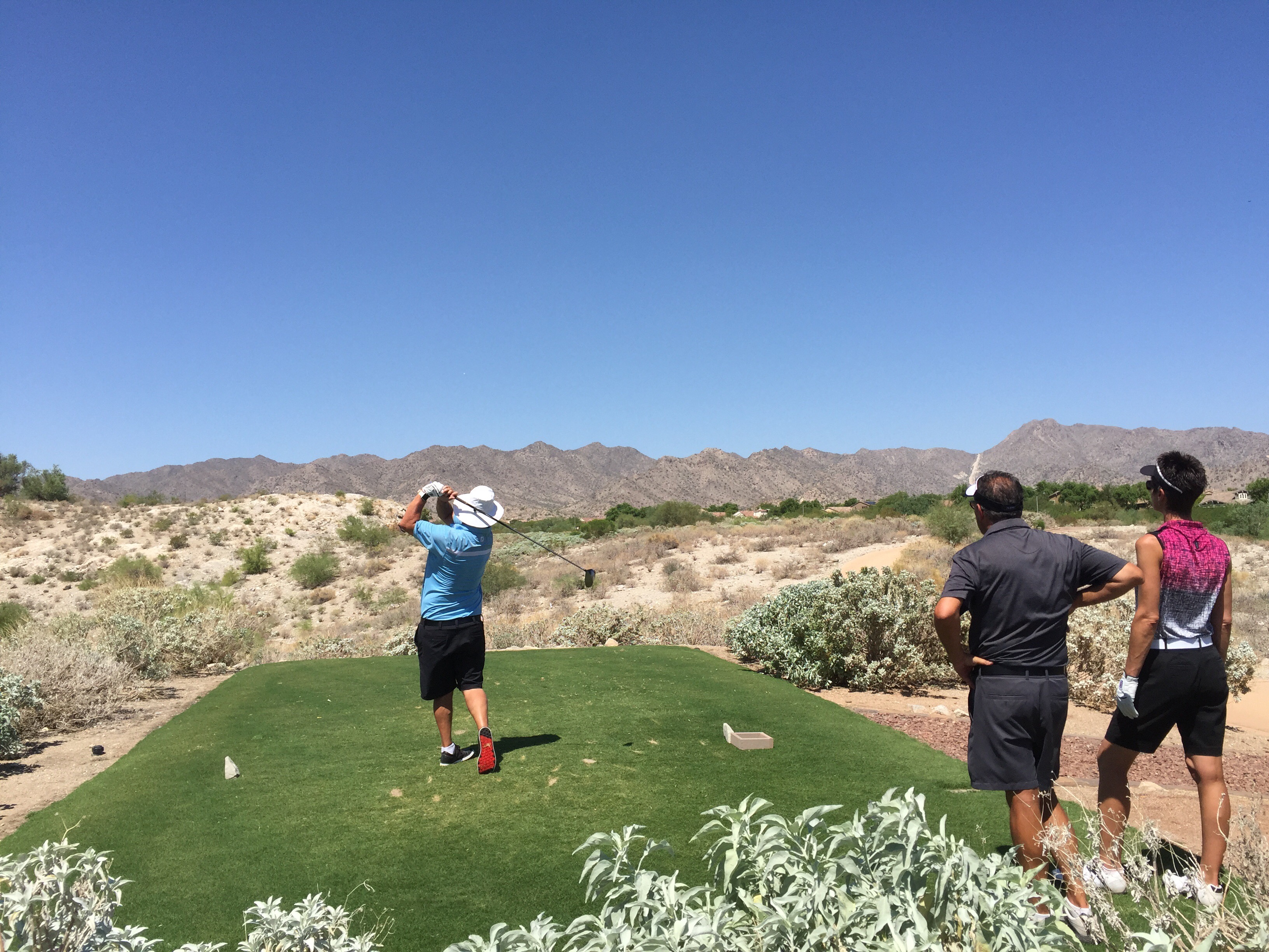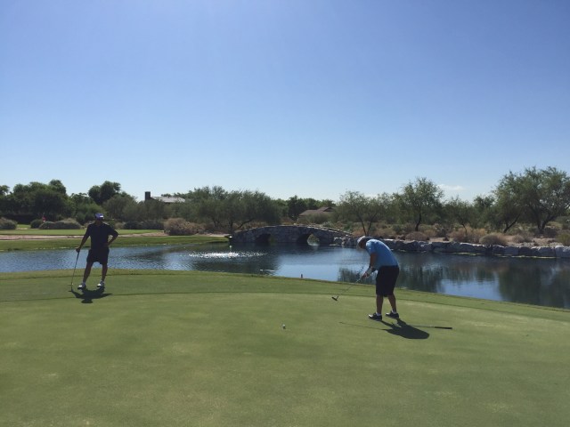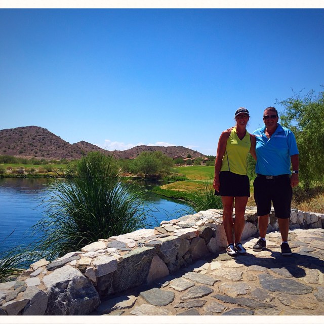 During our first round we played with Eric & Linda, a couple who live in Scottsdale. They are both physio’s and moved out to Arizona three years ago from Indianapolis. They love the lifestyle here and play a lot of golf. It was actually their birthdays – yes – they share the same birthday including the same year. We enjoyed there company and it seems everyone we play with has a snake story! The last time Eric had played at Verrado he came across the golf course staff dealing with a rattle snake that had been sunning itself on the cart path before the 14th tee block.