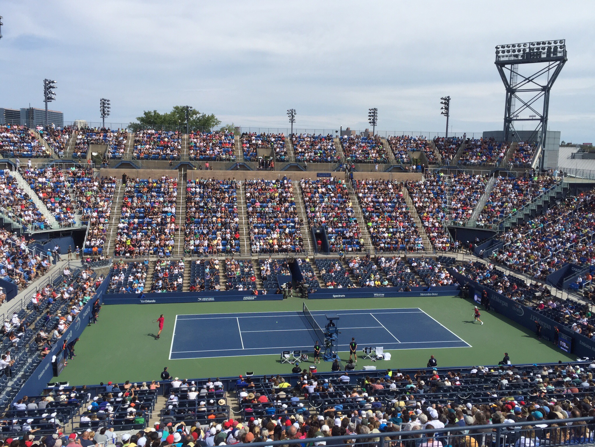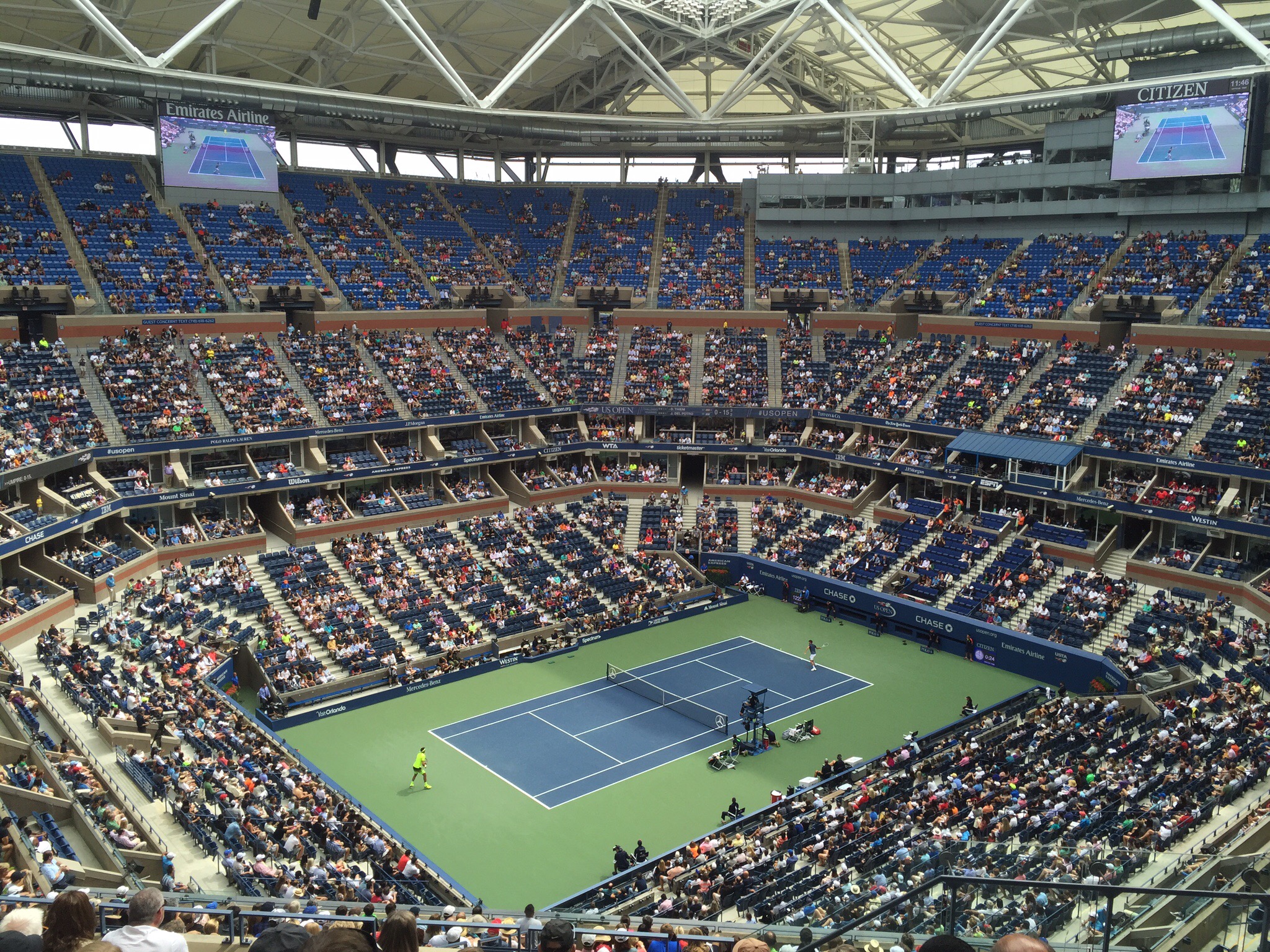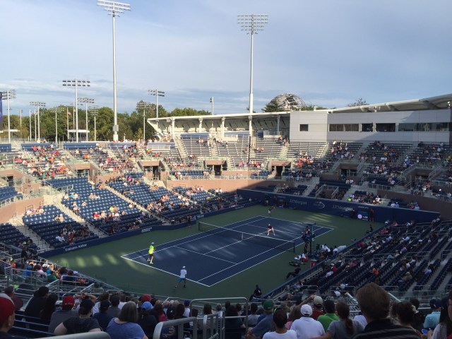 We had tickets to Arthur Ashe which is the main stadium. -these tickets also get you into the general seating on all the other courts. First up on Arthur Ashe was Juan Martin Del Potro from Argentina versus Dominc Theim from Austria. We were really excited to see this match as Del Potro is making a comeback after battling a wrist injury and Theim is an up and coming star who has played really well this year. Unfortunately Theim retired after the first set due to an injury – a bit ironic really.