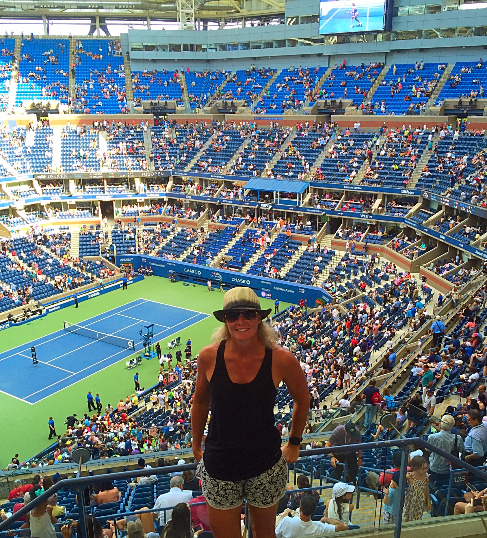 We got back to Arthur Ashe in time for the third set between Venus and Karolina. It was a good game and went all the way to a tie break. The power seesawed between the two and both woman played some great tennis. Right up to the tie break I thought Venus would win but Karolina over powered her in the tie break to win 7 – 3. Karolina holds the record on the woman’s tour for the most Aces.
