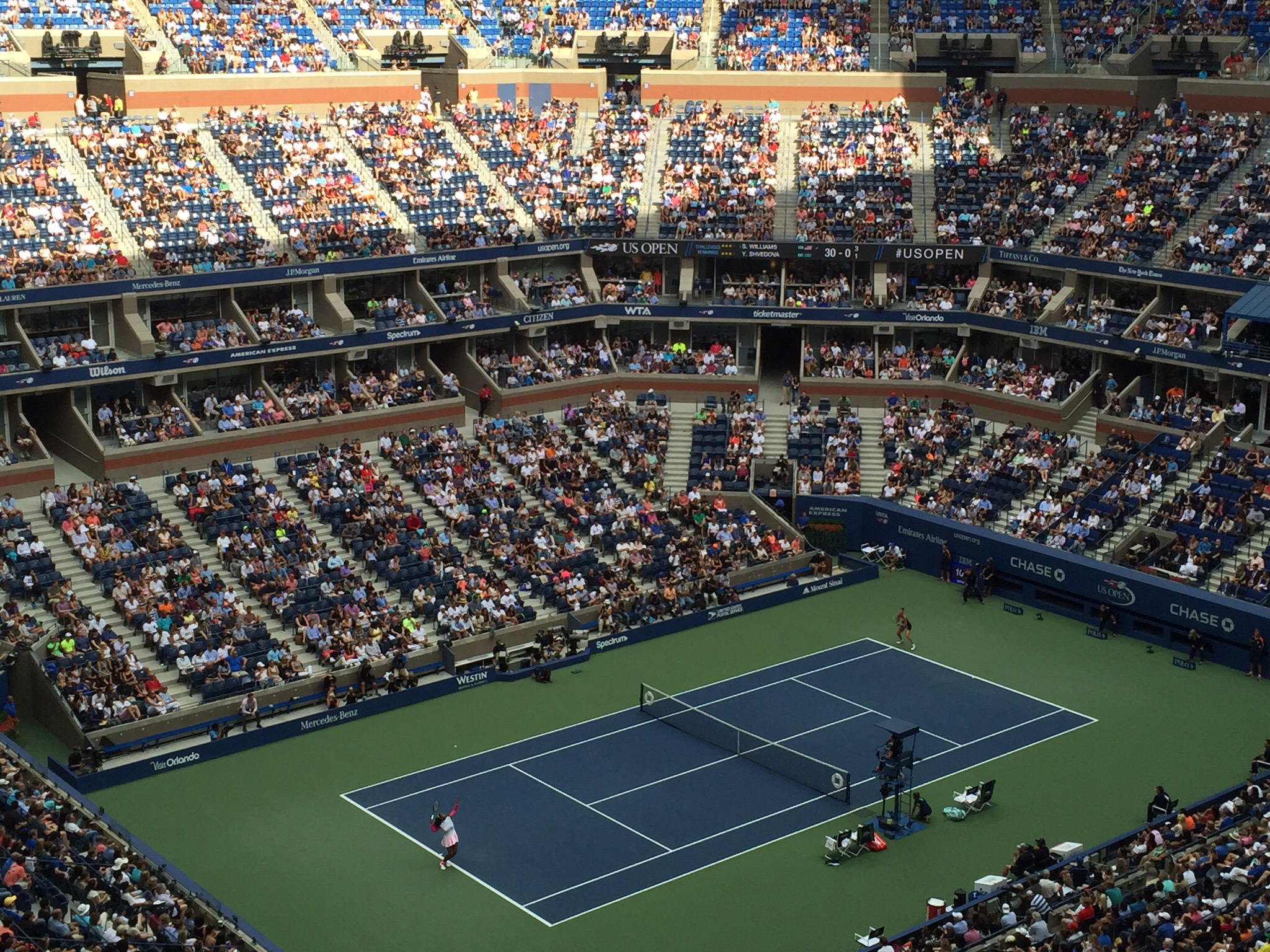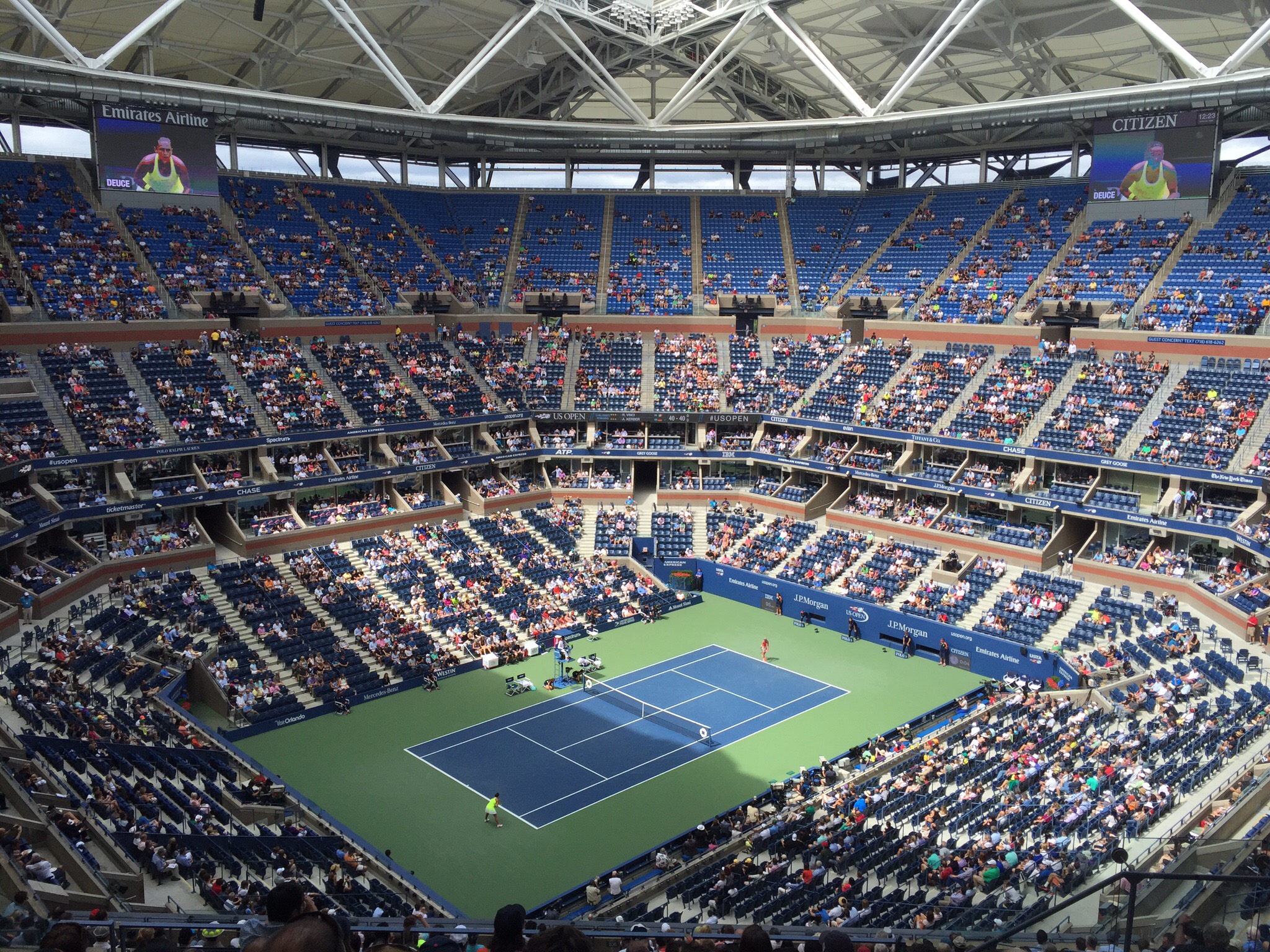 Now for the actual tennis – this was the first day of the Quarterfinals. First up on Arthur Ashe was Angelique Kerber the current world number two versus Roberta Vinci who had risen to worldwide prominence at the 2015 US Open, when she reached the semi-finals and defeated world number one Serena Williams in three sets, ending Williams’s hopes of winning the Calendar Grand Slam, in what has been described by numerous commentators as one of the biggest shocks in tennis history. She went on to lose to Flavia Pennetta in the first ever all-Italian Grand Slam final.