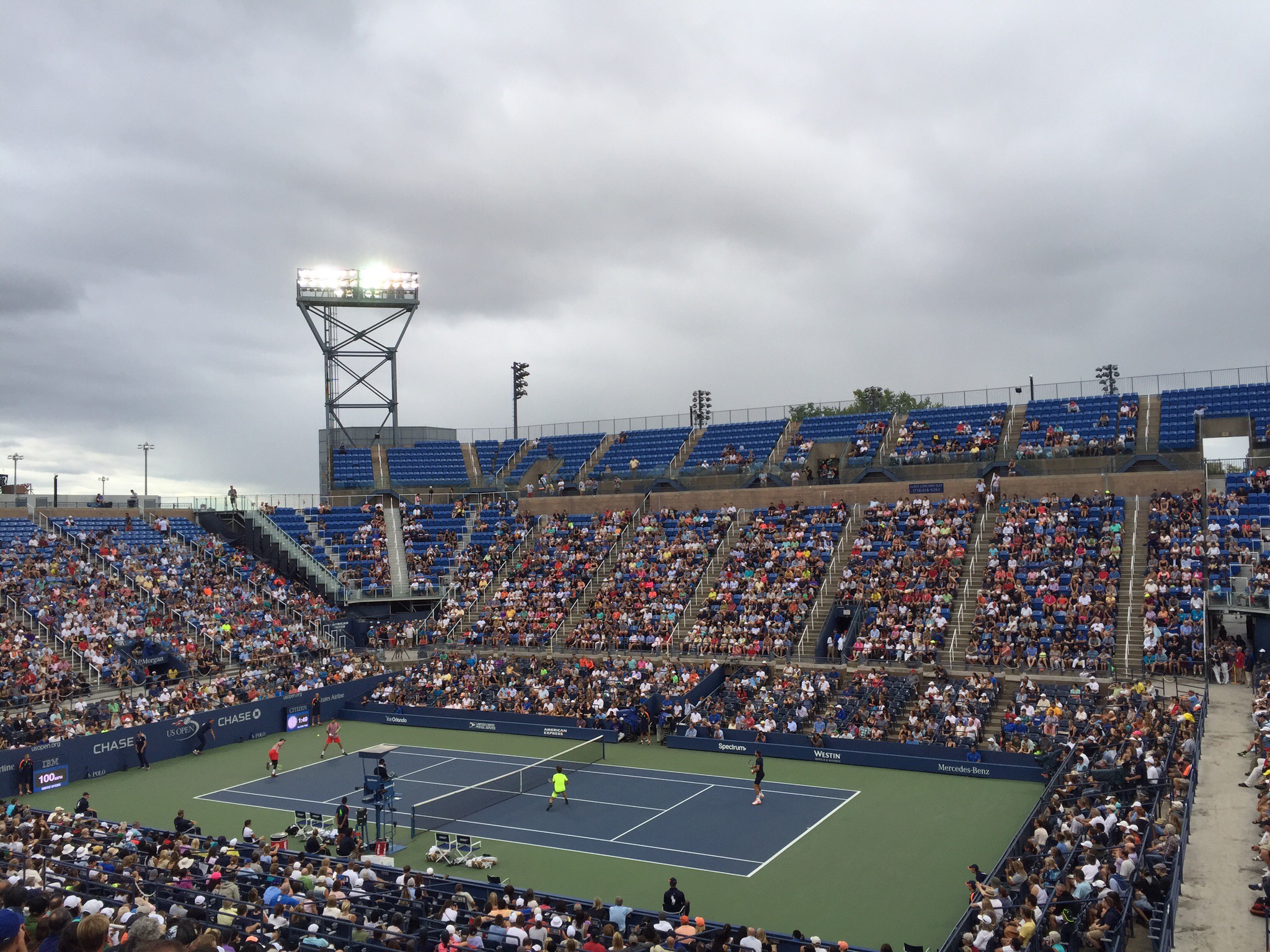 The final game was being played on Louis Armstrong before it undergoes a major renovation so we thought we would pop over there and check it out. The last game was a men’s doubles quarterfinal between the Bryan Brothers, Mike & Bob and Feliciano Lopez and Marc Lopez who are not brothers, they just happen to share the same last name. The Bryan Brothers are from the US and are major tennis icons having dominated the men’s doubles for many years – they have played in 21 US Opens and have won 114 doubles titles. It was quite fitting that they featured in the last match on Louis Armstrong. Unfortunately they went down to the two Lopez’s.