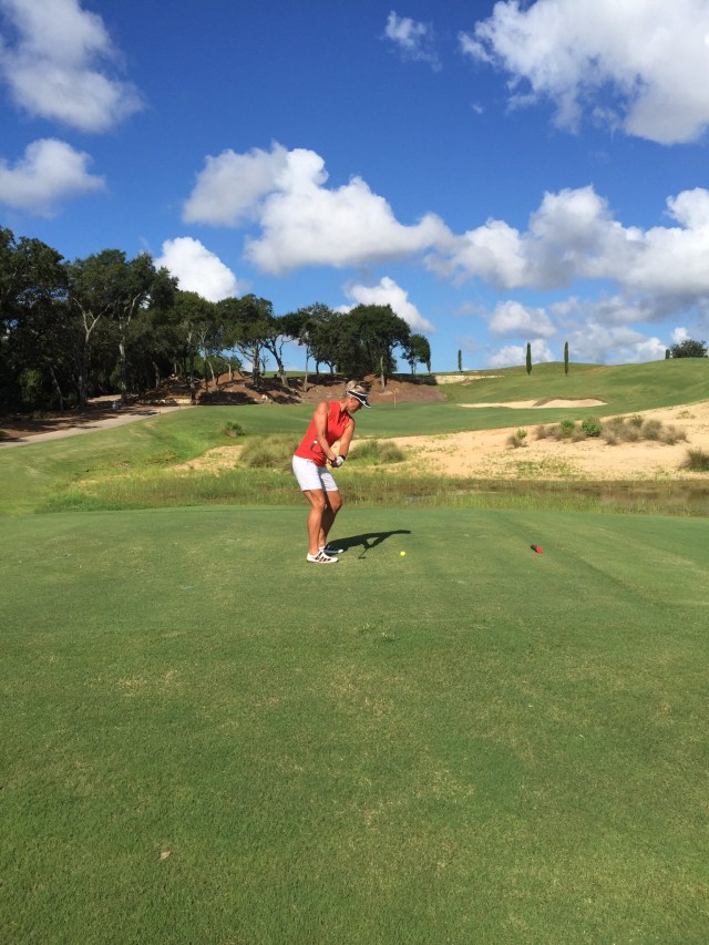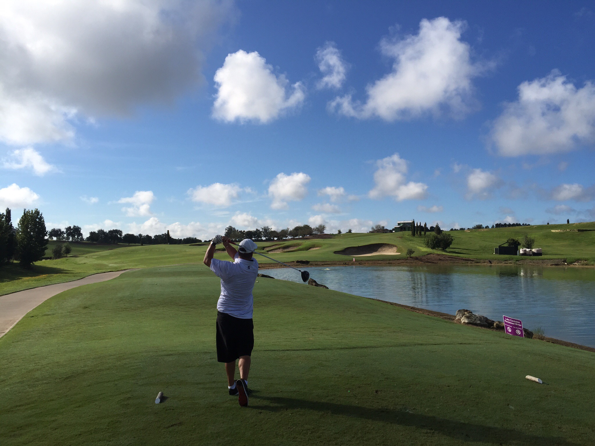 The golf course was designed by Nick Faldo and is long off the Championship Tees, not that we were going to be attempting those. The guy that set us up on the cart told us the course was tough – great! The first hole did look pretty intimidating with quite a big left to right slope with all these bunkers waiting at the bottom of the slope for your ball. We both managed to stay left and par the hole. There were definitely some long holes but we didn’t find it too bad and both scored pretty well.