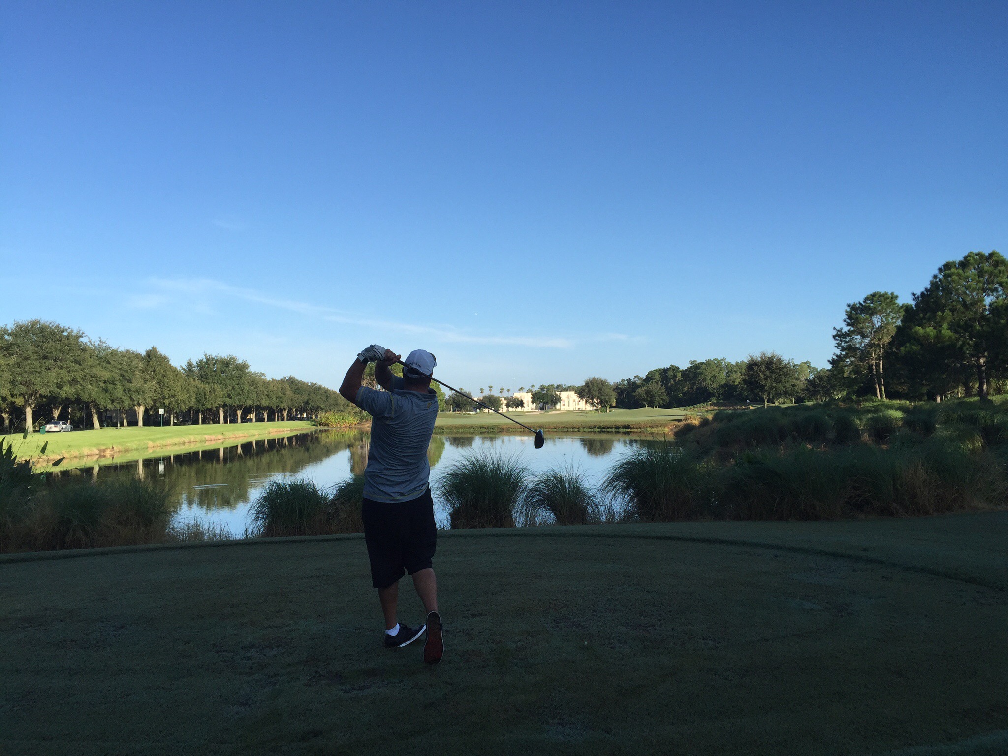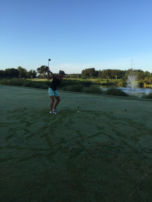 Next off the rank was Celebration Golf Club. We actually played this course when we were here in 2014 based on a recommendation from a friend and really enjoyed it. The practice range sees you hit balls into the water – the only time it is OK to hit balls into the water! They use special balls that float and the wind and current usually push them to one spot for collection.