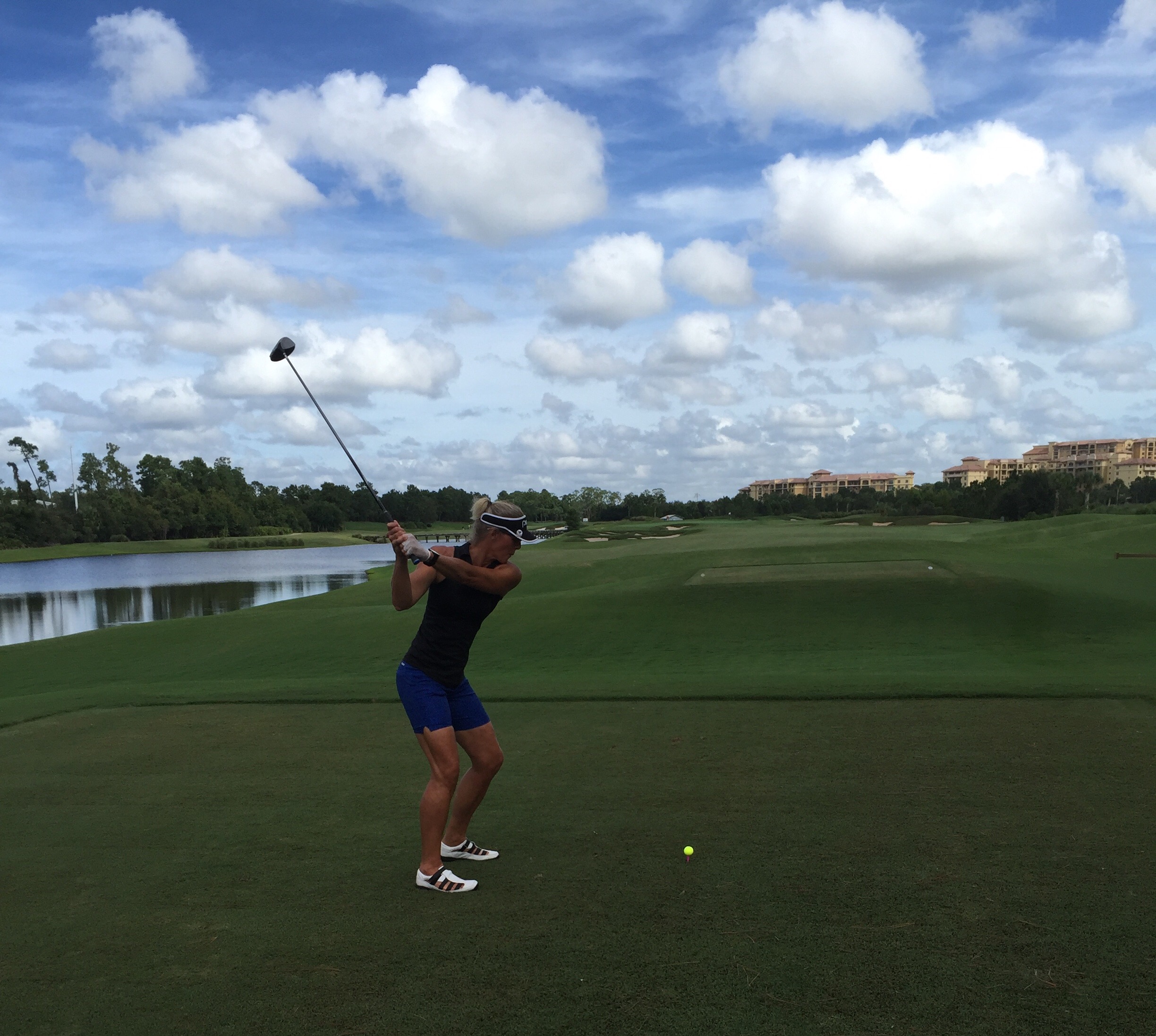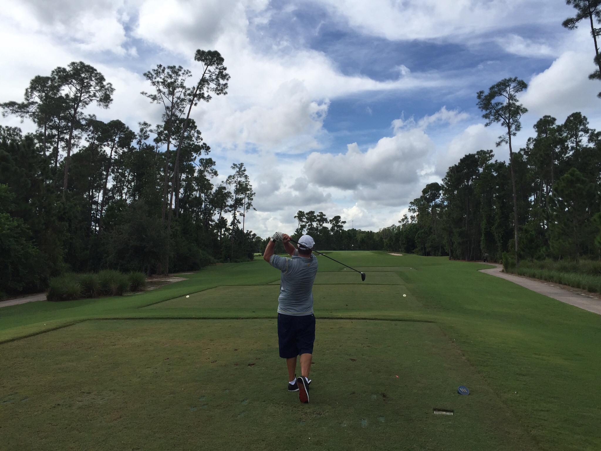 We had a later tee time today and were a bit worried how we would cope with the heat. It turned out to be quite overcast and breezy so although warm we mostly avoided the wrath of the sun. The facilities and staff at the Waldorf Astoria are pretty impressive. We had complimentary valet parking so that was a novelty. We were then welcomed to the practice facilities and then given a great briefing about the course. We got chatting to the Starter about being from NZ and he said that the guy giving a putting lesson on the putting green was none other than Lydia Ko’s putting coach, Mark Sweeney! Lydia is based in Orlando now and frequents the David Leadbetter Centre at Champions Gate Golf Course where we played the other day and comes to Waldorf Astoria to work on her putting.