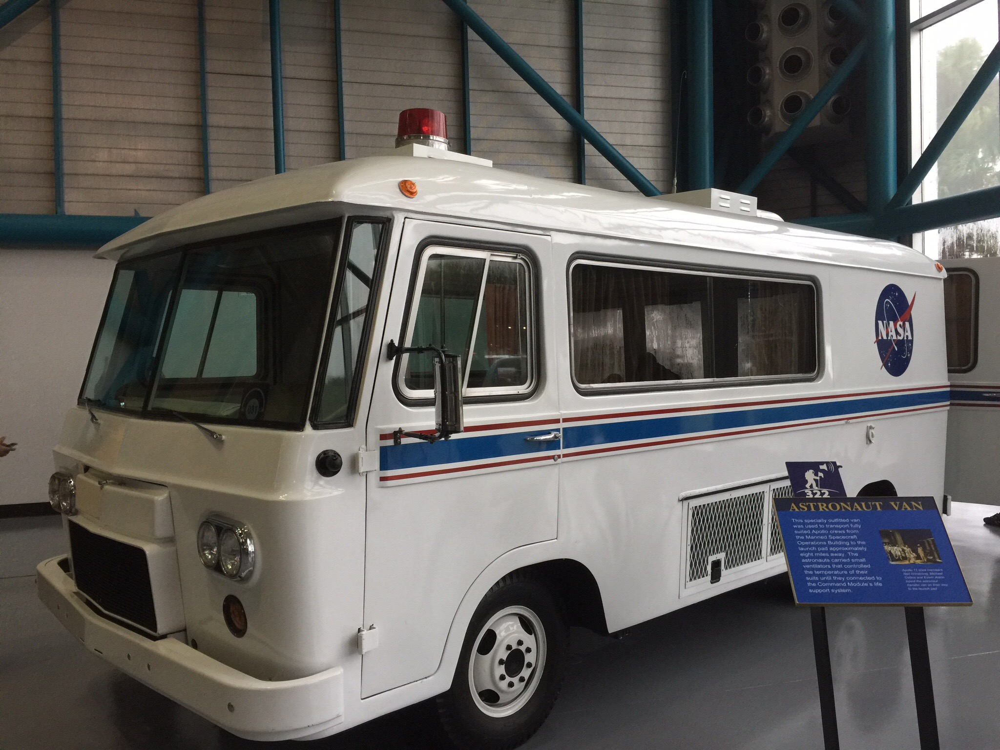 The Astronaut Van – this specially outfitted van was used to transport fully suited Apollo crews from the Manned Spacecraft Operations Building to the launch pad approximatley 8 miles away.  The astronauts carried small ventilators that controlled the temperature of their suits until they connected to the Command Module’s life support system.