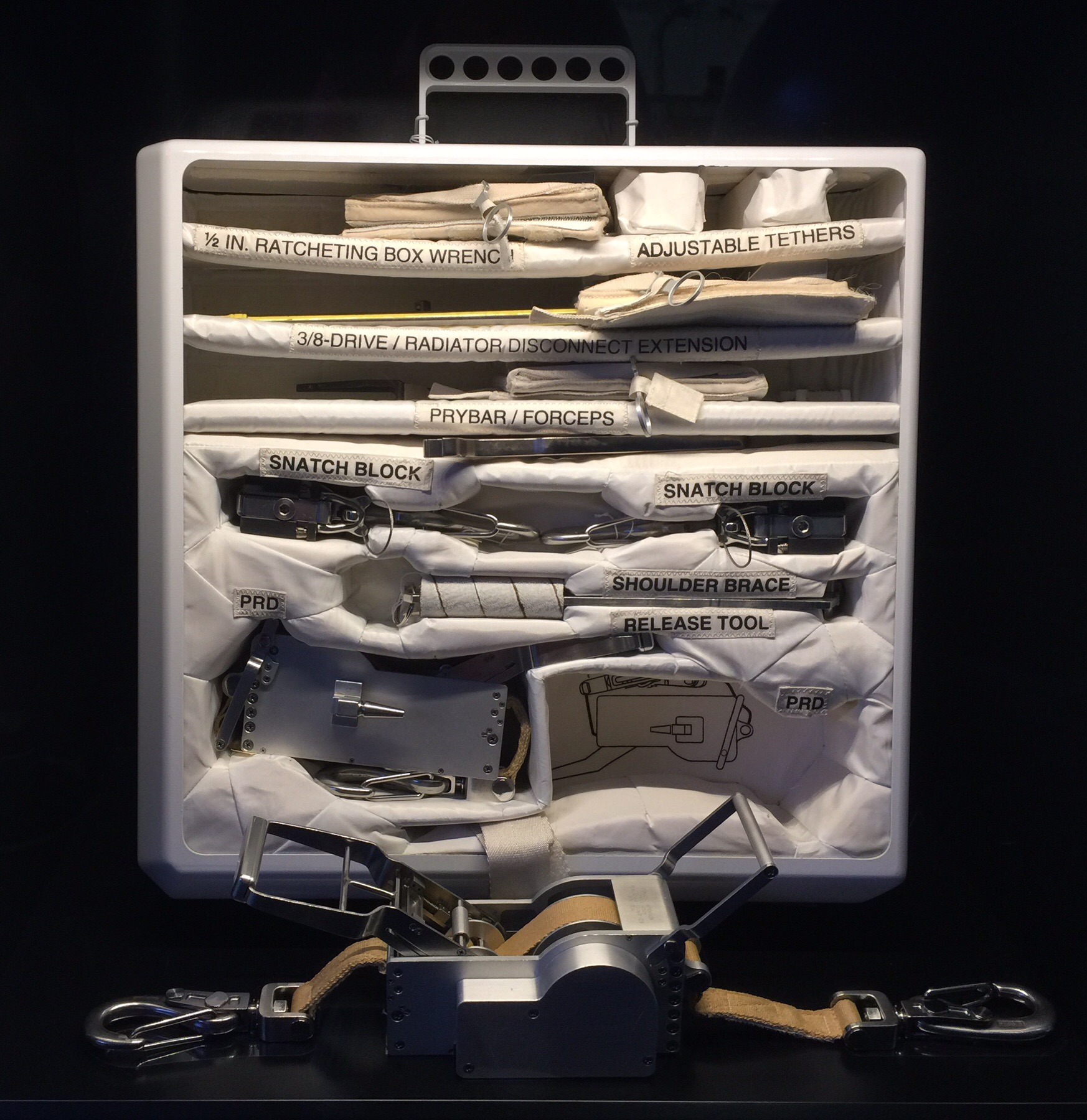 Space Tool Box – this held tools for space walks and onboard repairs.  This box was padded to protect tools during launch, reentry, and in the microgravity of space.