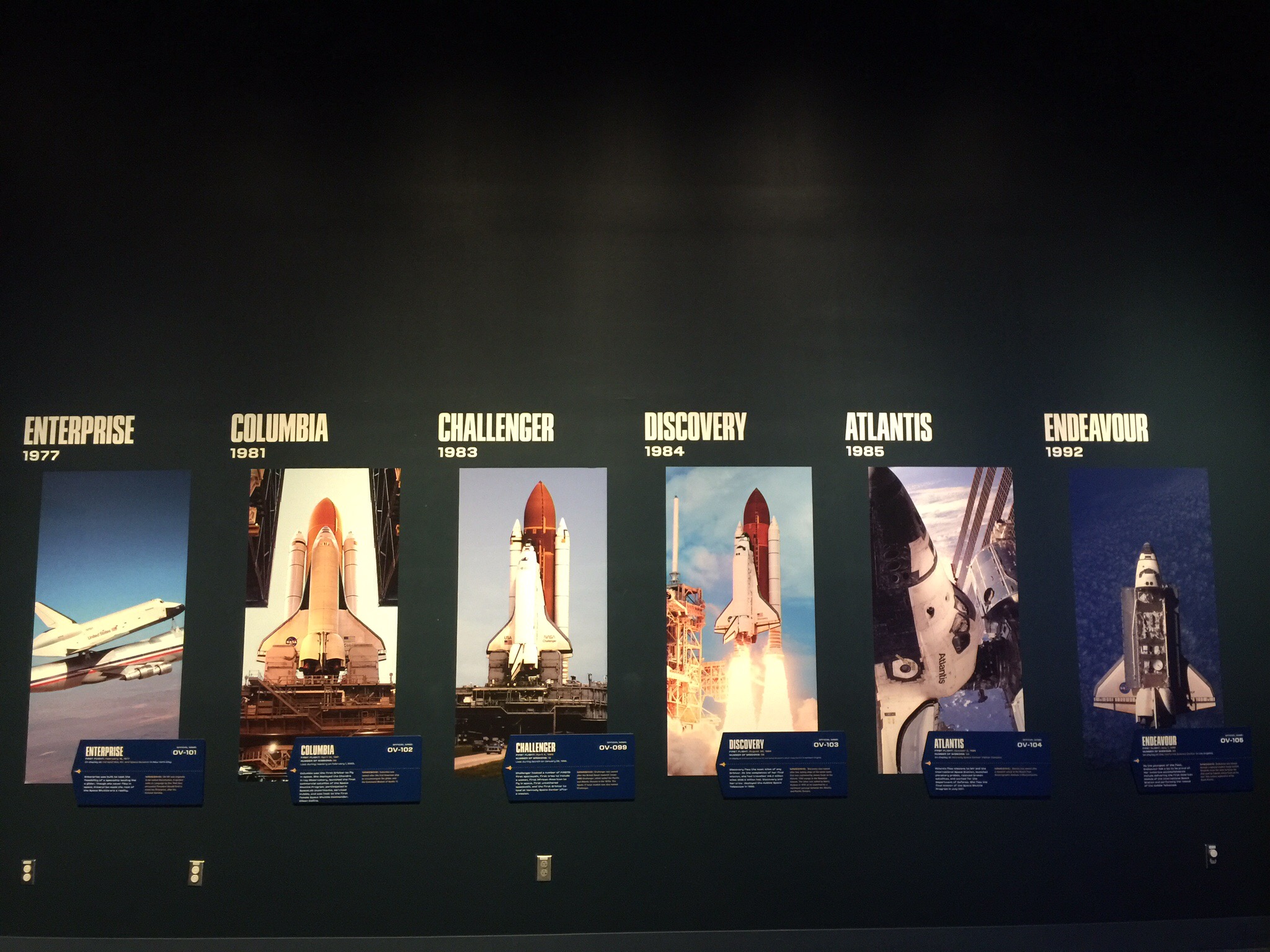 The Space Shuttle program had 13 successful missions and 2 failed missions – Challenger where the launch failed and caused 7 fatalities and Columbia where the re entry failed which also caused 7 fatalities. We visited the Fallen Heroes tribute which had photos and personal possessions of each of the crew members who perished in these failed missions.