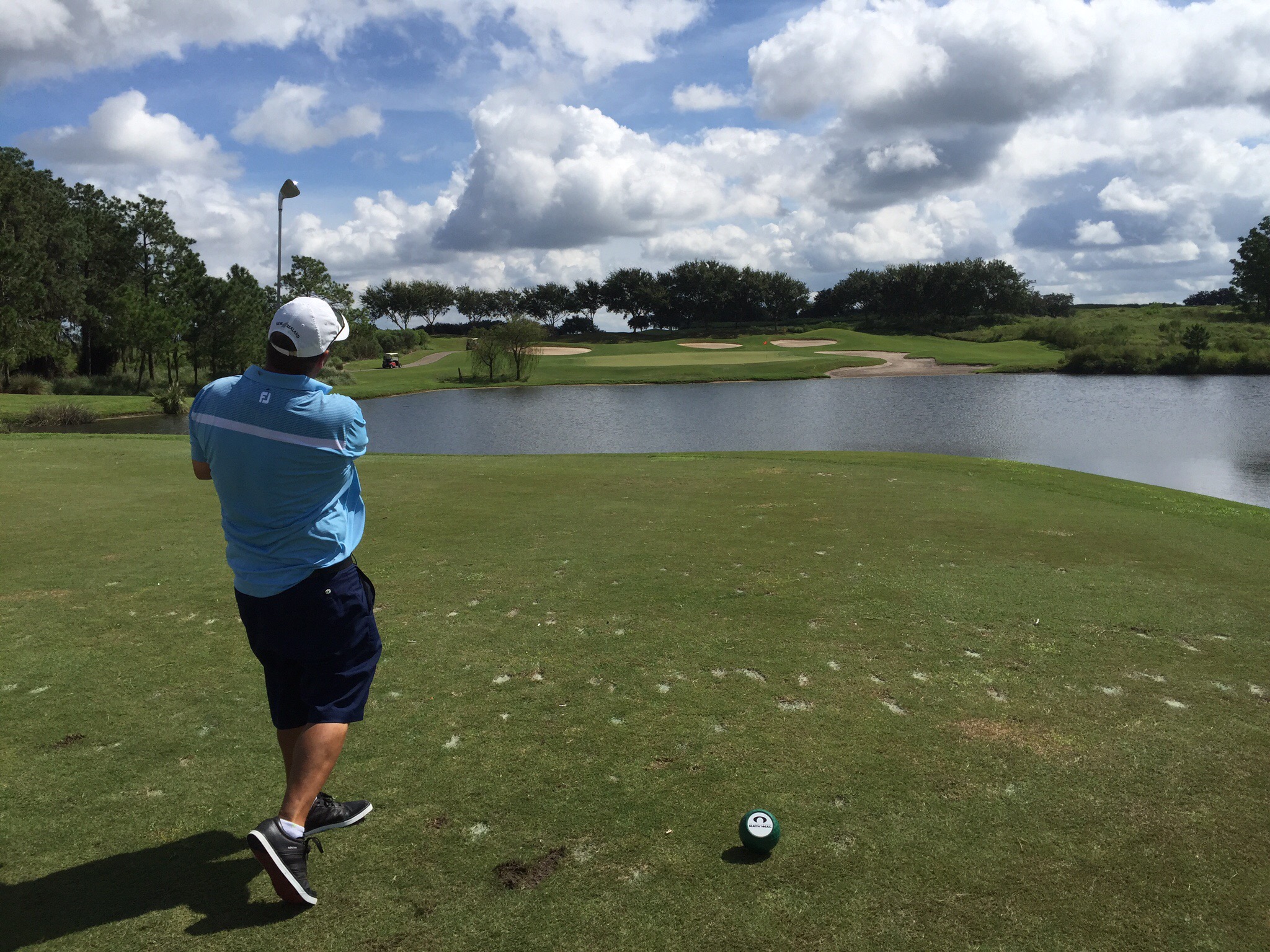 Sorry team but we are back on the golf bandwagon : ). On Wednesday we played the Panther Lake Course at the Orange Country National Golf Centre. We were teamed up with a couple of lads – Shane and Dan. They were good sorts but had a few issues with their golf balls off the tee : 0. Shane was a local and Dan was visiting from California. Shane had served with the US Army in Iraq for a couple of years and had retired – we reckon he was in his 40’s so the Army pension must be OK.