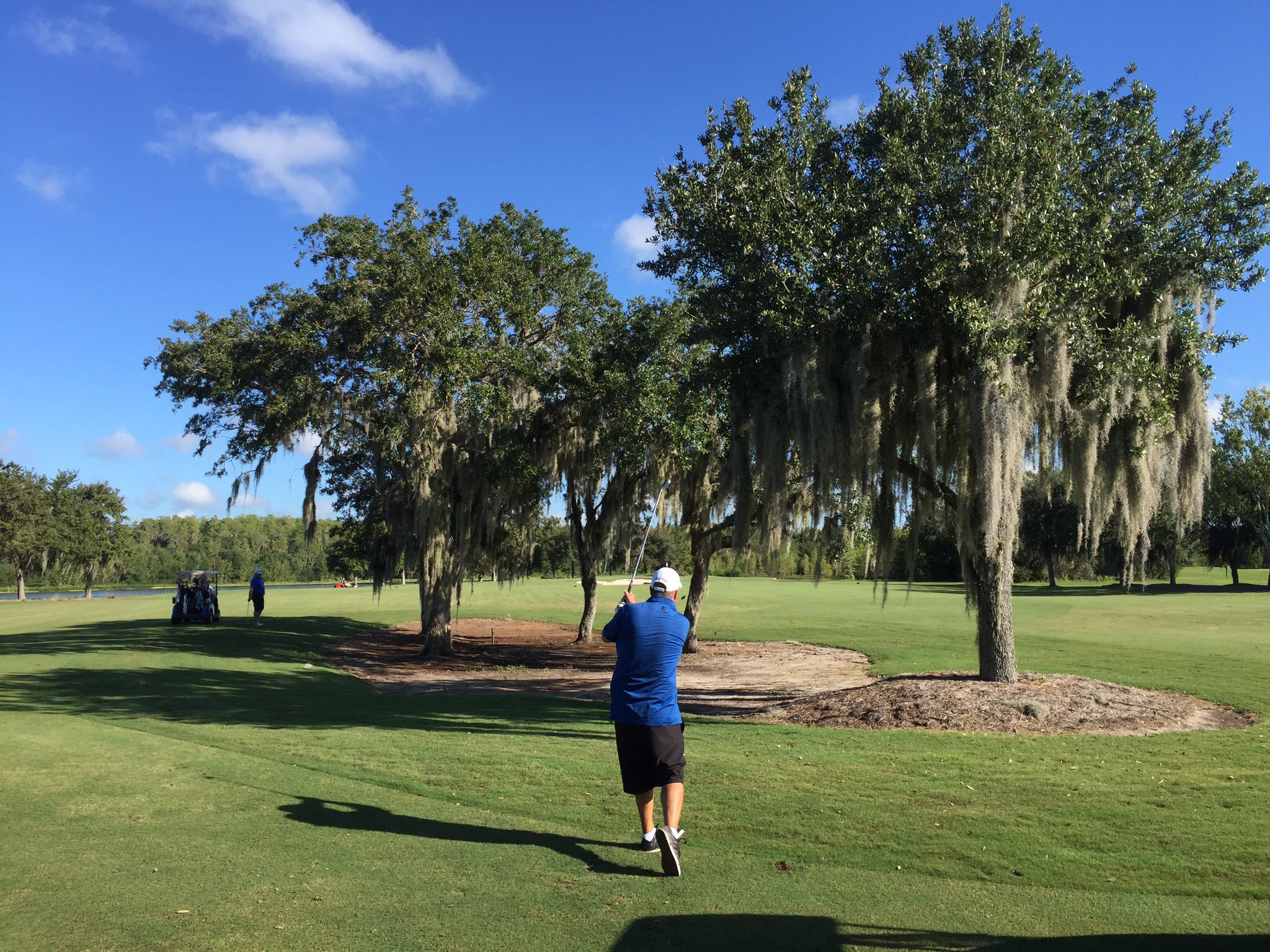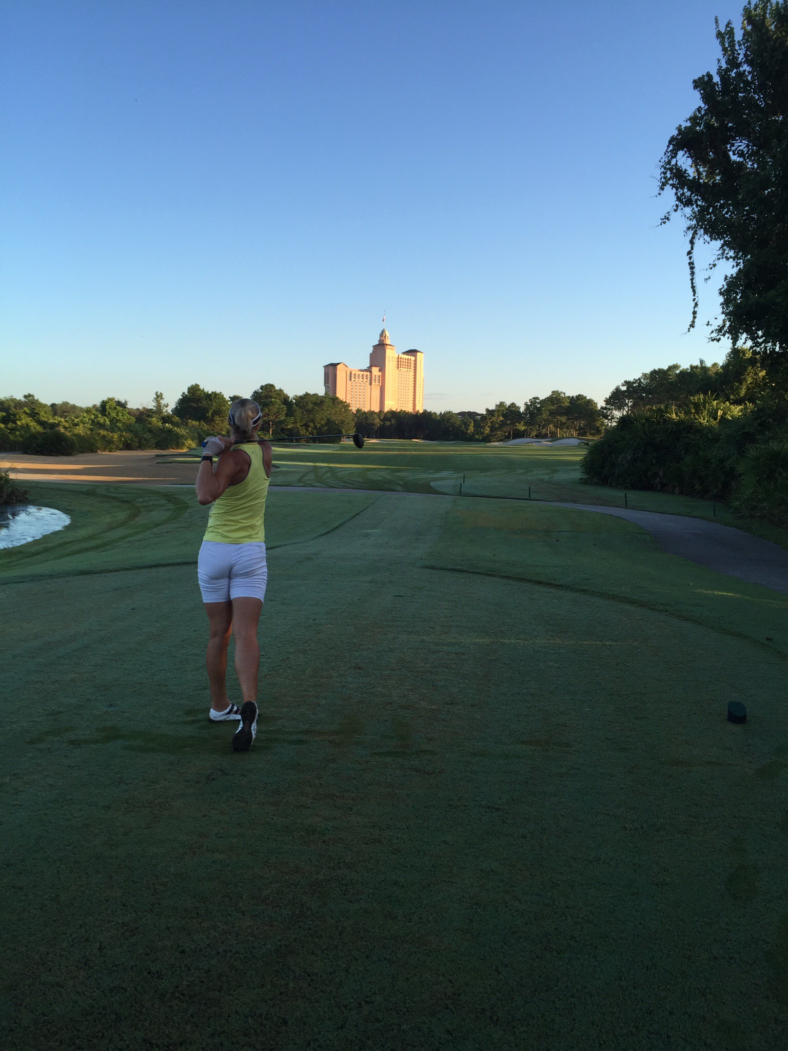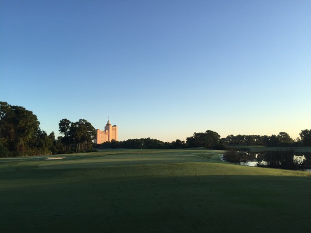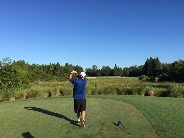 Back to the early starts today – destination the Ritz Carlton Grande Lakes Golf Course. A little hiccup finding the golf club – Doris our GPS was saying one thing while Google Maps was showing something different and the poor signage just added to our woes. We worked it out but wasted a few minutes and when you’re cutting it fine at 6.30am a few minutes is a lot! Managed to hit a few balls on the range and then we met up with our playing buddies for the round – Kevin and Blake. Kevin was a member at the course and Blake told us they were a couple of hacks – yeah right! They were both big units and man could they hit the ball although Blake lost a few wayward balls off the tee – that will learn him for impersonating a gorilla : ). They both worked for the US Army in the property management area. They were nice guys and we enjoyed our round with them.