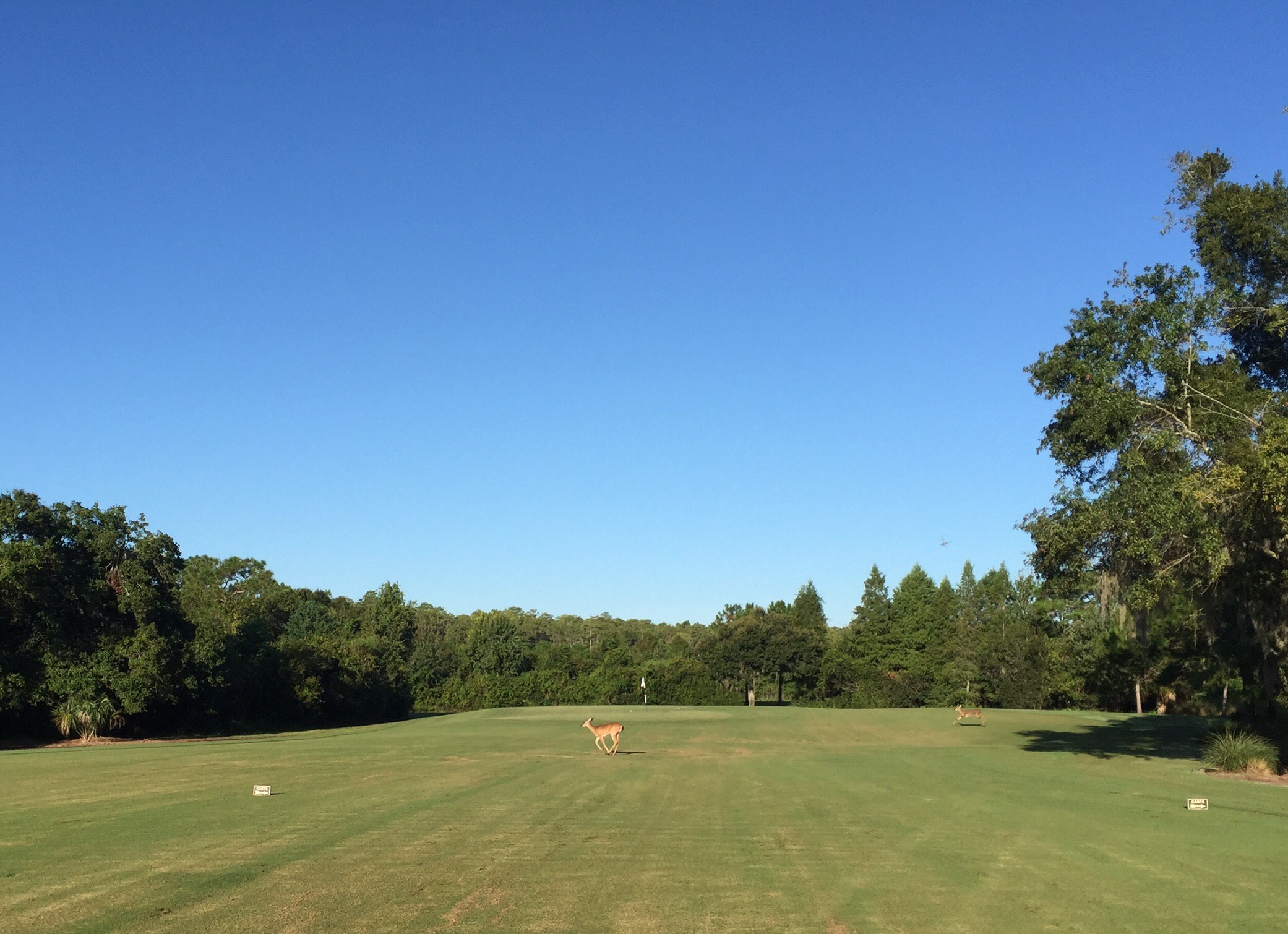 It was definitely one of the more serene courses we have played. We saw a bit of wildlife including two baby deer – one was limping though. Steve reassured me that it’s sore leg probably wasn’t attributed to being hit by a golf ball!