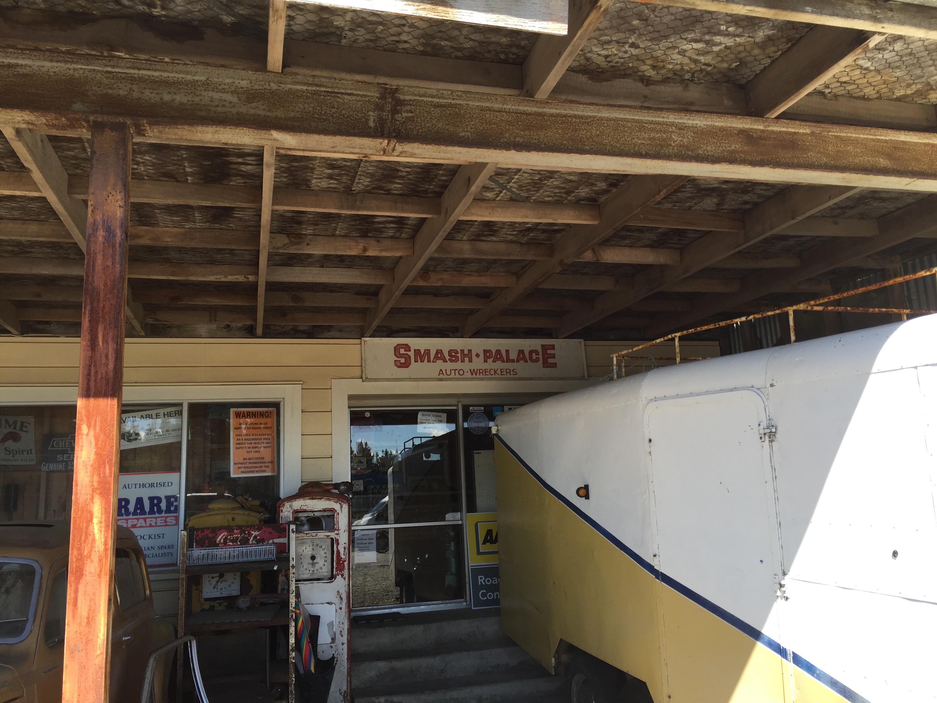 The northern end of the coach road at Horopito is the home of Smash Palace, the famous auto wreckers yard with hundreds of vehicles waiting to be restored and loved again. I think every Kiwi over the age of 40 has some memory of the movie Smash Palace. The wreckers yard stretches some way and it is incredible how many cars are there.