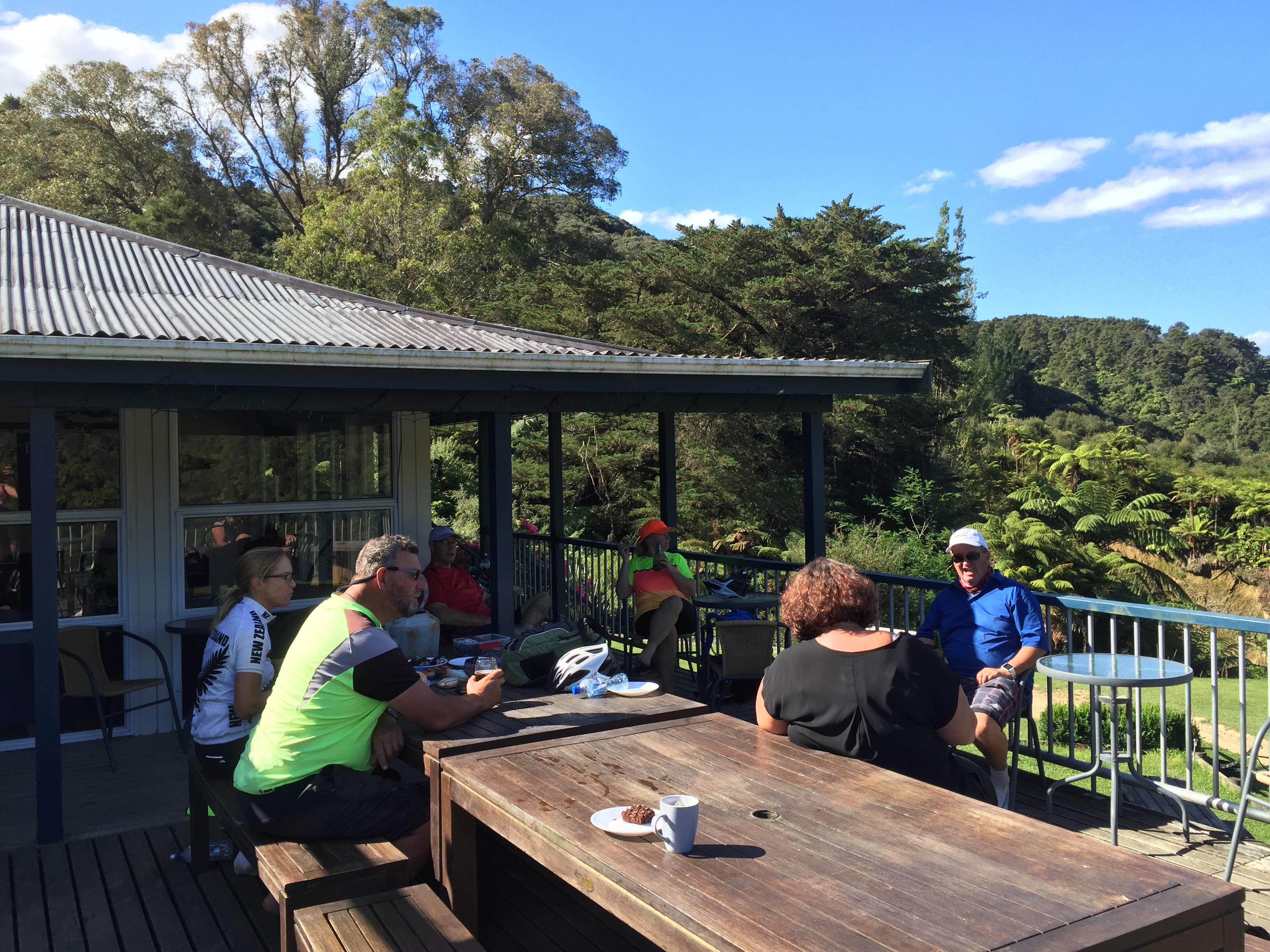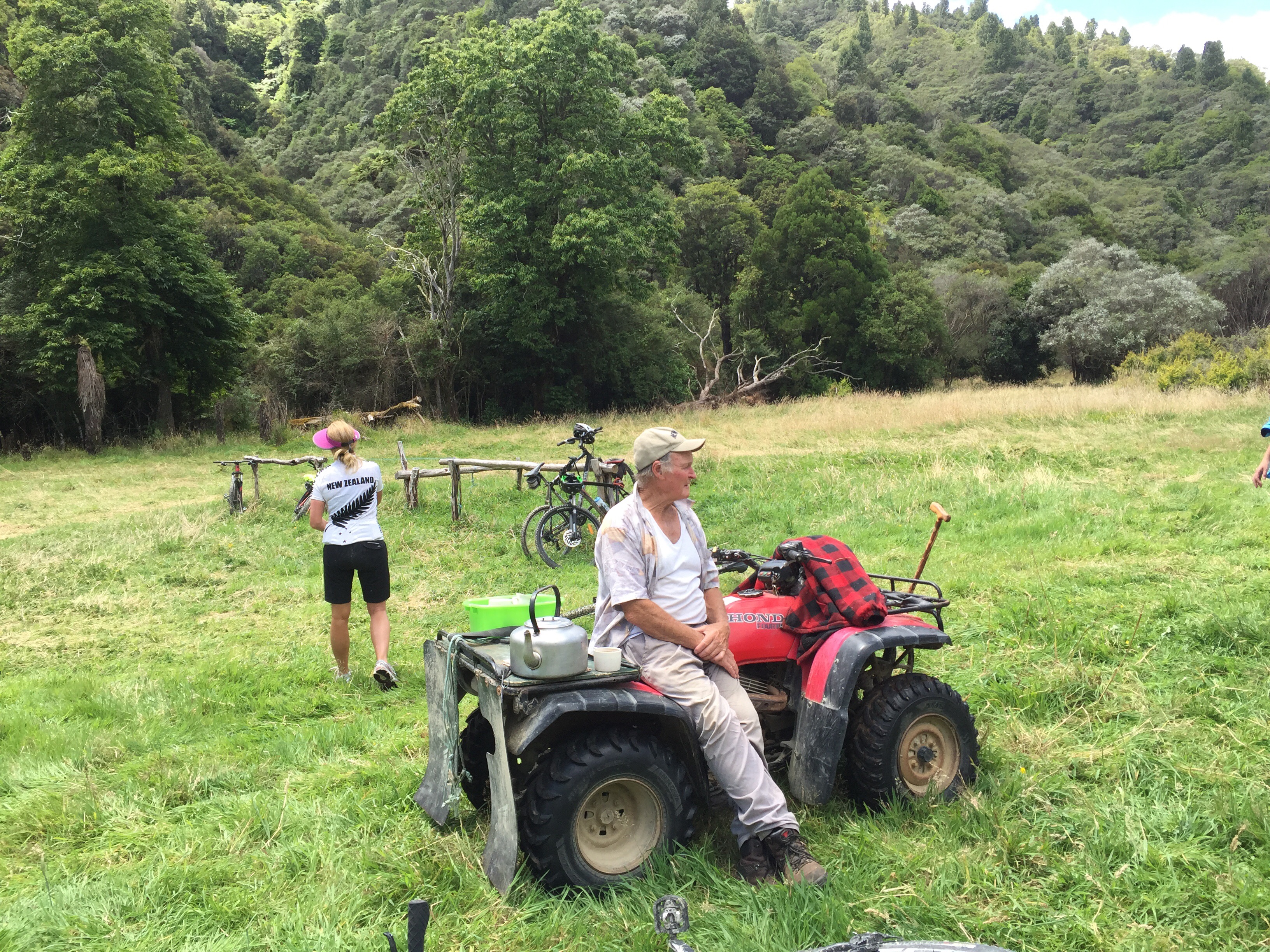 We met a descendant of one of the returning soliders at our lunch stop. He sets up camp every summer and just returns to his house in Raetihi every few weeks to mow his lawns. He had the billy on and offered us a cuppa tea. He loved to chat and we enjoyed listening to some of his stories before getting back on the bikes.