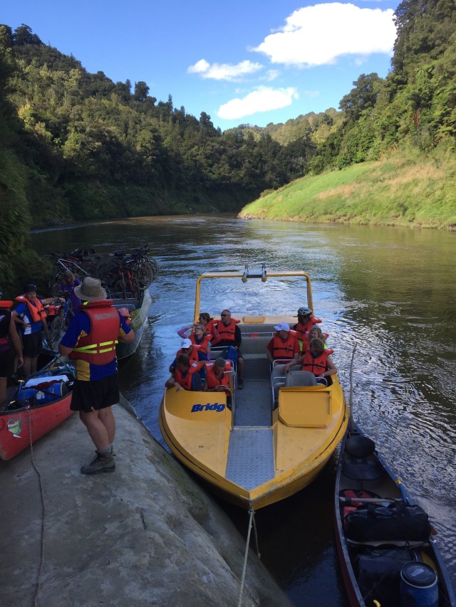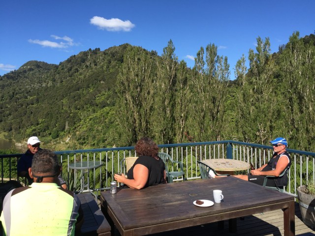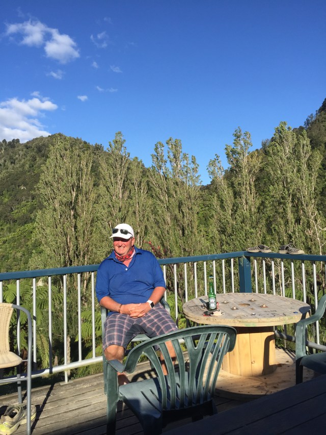 We still had 3km to go to reach the river where our jet boat awaited us. We were being transported to the Bridge to Nowhere Lodge for the night. It was a beautiful day so the ride down the river was great. The refreshments at the Lodge were even better and after showers we enjoyed sitting on the large balcony enjoying the views up and down the river.