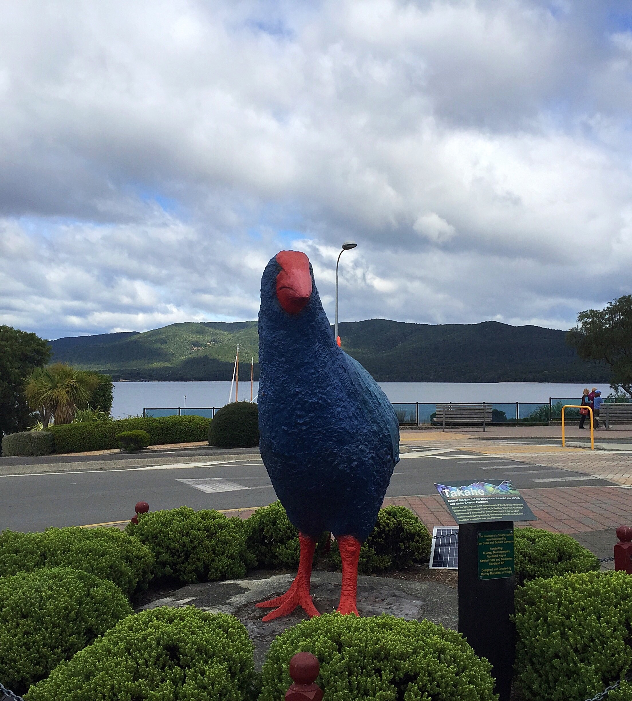 The Takahe. Extinct? Not quite, but the only place in the world you will find wild takahe is in Fiordland. Across the lake, high up in the alpine tussock of the Murchison Mountains, takahe were rediscovered in 1948 by Dr Geoffrey Orbell from Invercargill. Their survival is supported by a local Department of Conservation captive breeding programmme as well as work controlling introduced predators and deer in their mountain home.