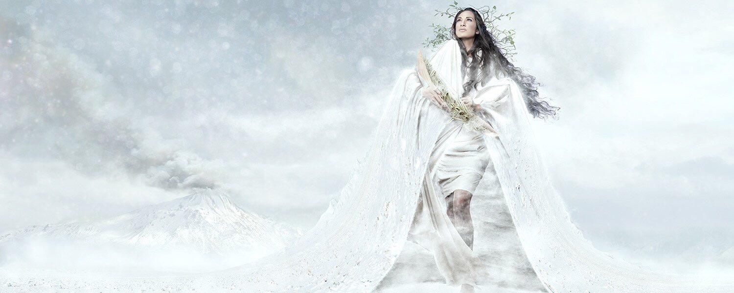 Poliʻahu met the Aliʻi Aiwohikupua on the Eastern slope of Mauna Kea. The two fell in love and Aiwohikupua took Poliʻahu home to his native Kauai. There Poliʻahu discovered that the aliʻi was already betrothed to a princess of Maui. Poliʻahu left in dismay, but managed to first curse the betrothed. She first chilled the princess of Maui to the bone, then turned the cold into heat. Finally, the princess gave up and left him. Later Poliʻahu similarly cursed Aiwohikupua, freezing him to death. The four goddesses are defined by their otherworldly beauty. Poliʻahu is noted as Hawaii’s most beautiful goddess.