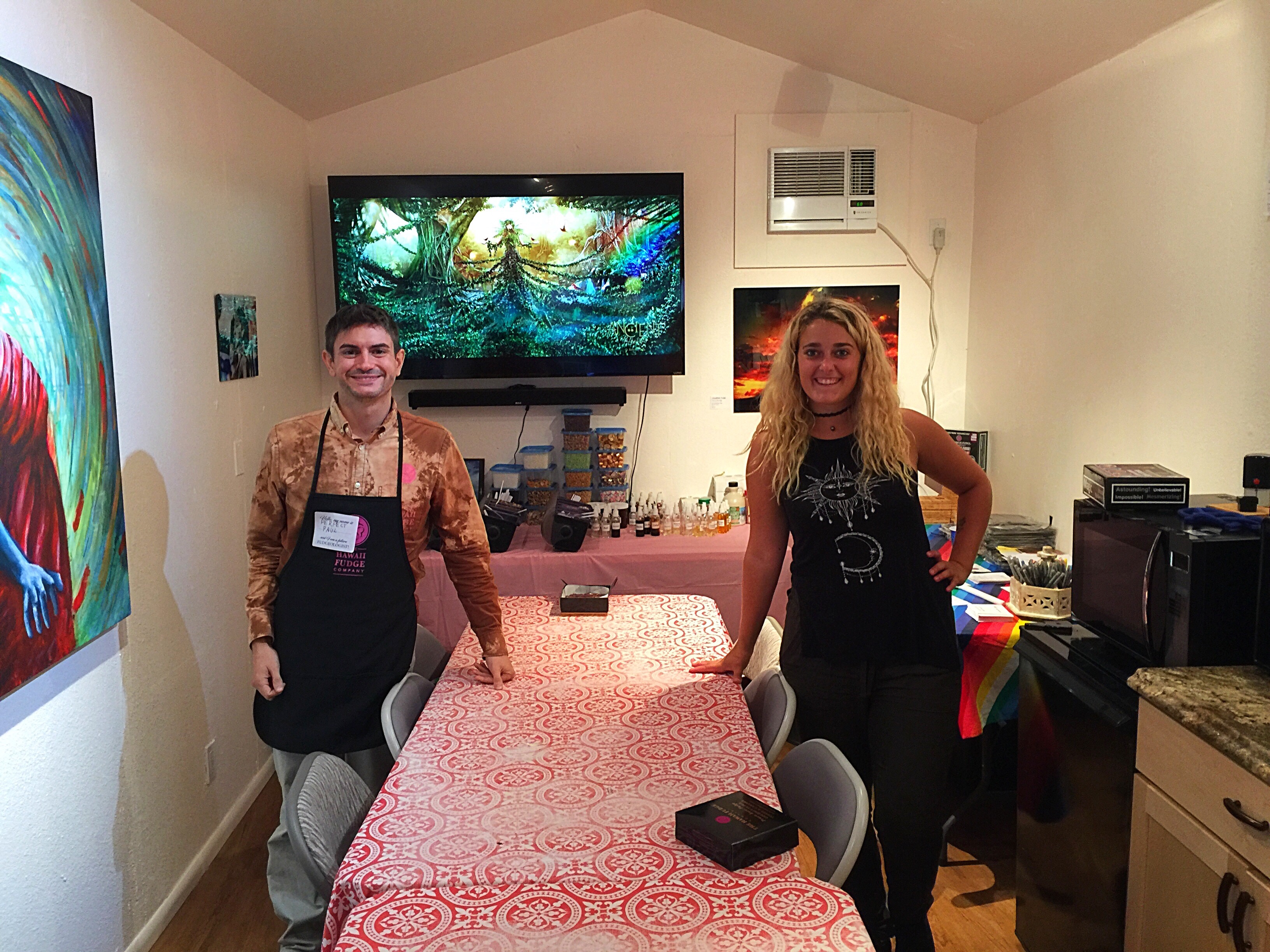 We arrived at Fudge University at 5.30pm and the other two people booked in for the class didn’t turn up so we ended up having our own private class. Paul gave us a bit of history on the Company and then on Hawaii itself which was really interesting. The mythology is very similar to that of our indigenous people in NZ. They have produced these four different fudge boxes which depict four different Hawaiian Legends – see below.