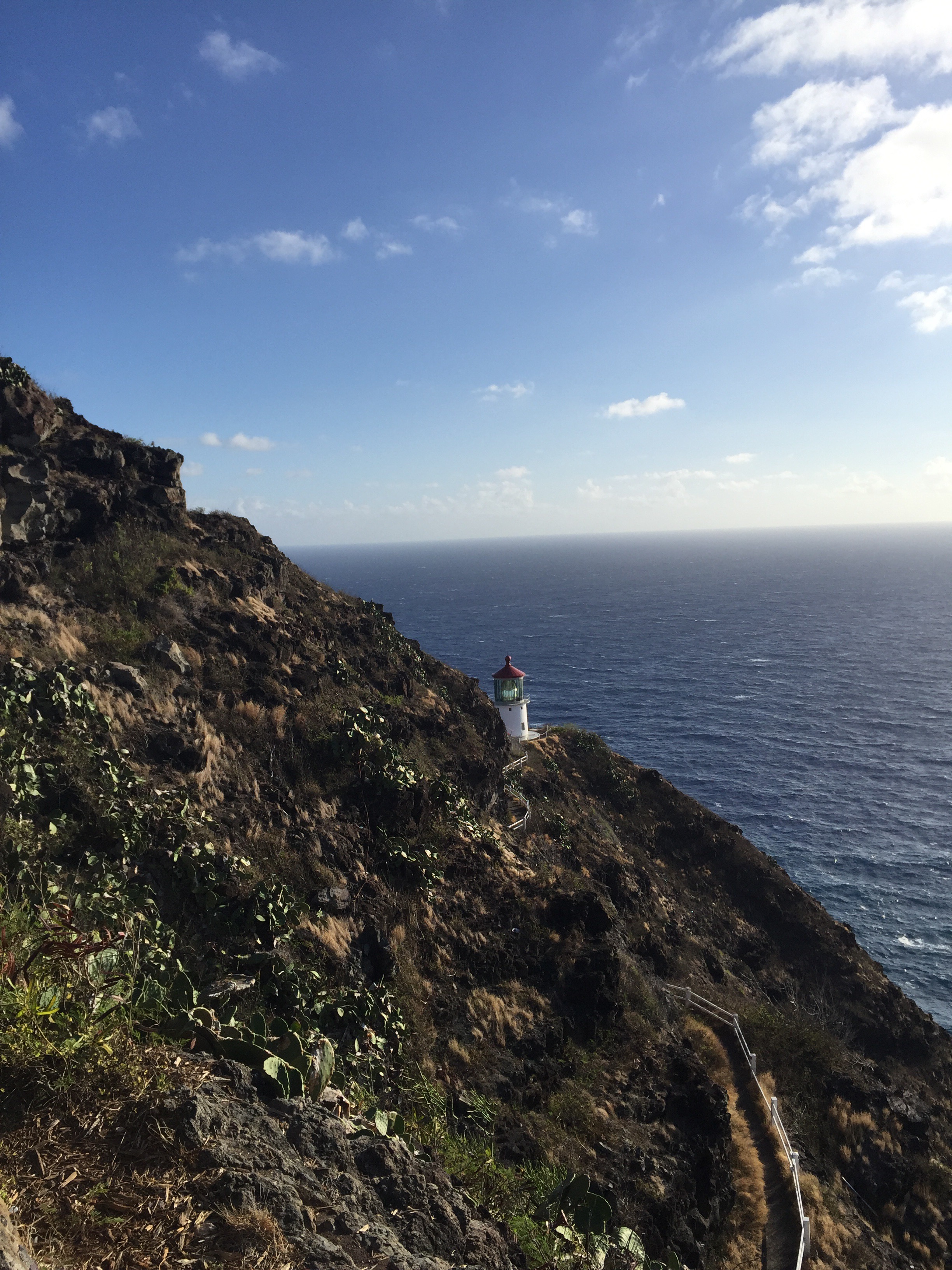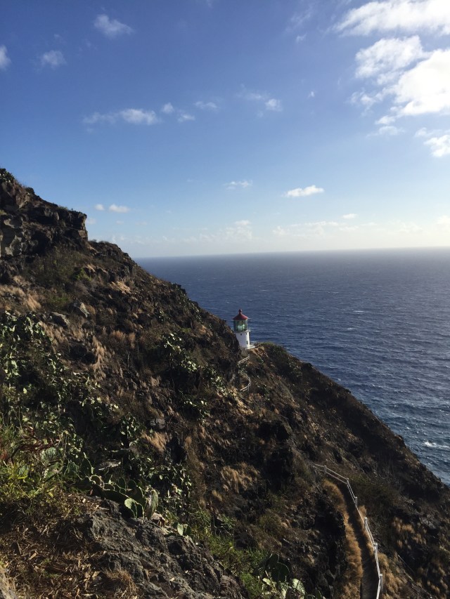 On our first morning on Oahu, Ashleigh and I went to do a walk to the Makapu’u Lighthouse – we had spotted the trail on our way to Wholefoods the night before. Although the trail went up a hill it was all tarsealed and made for a pretty easy walk.