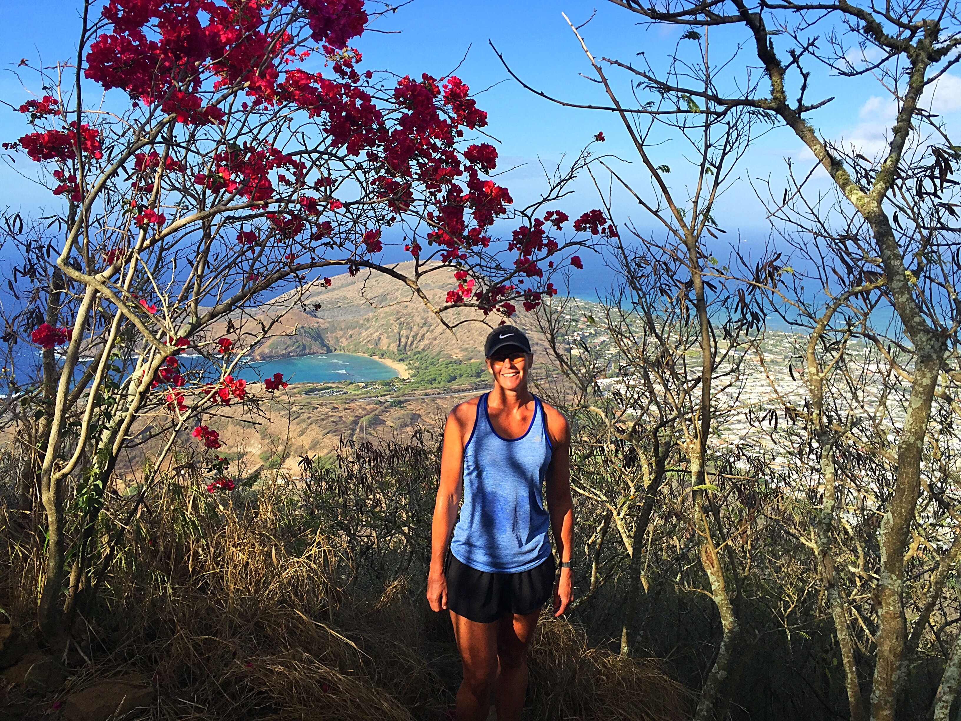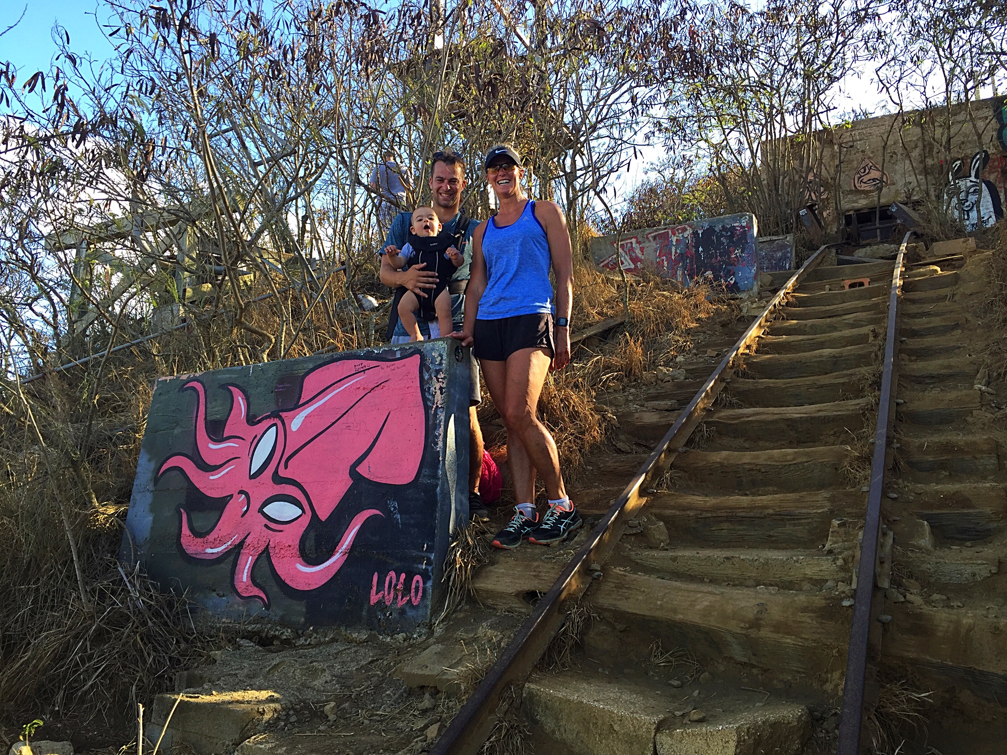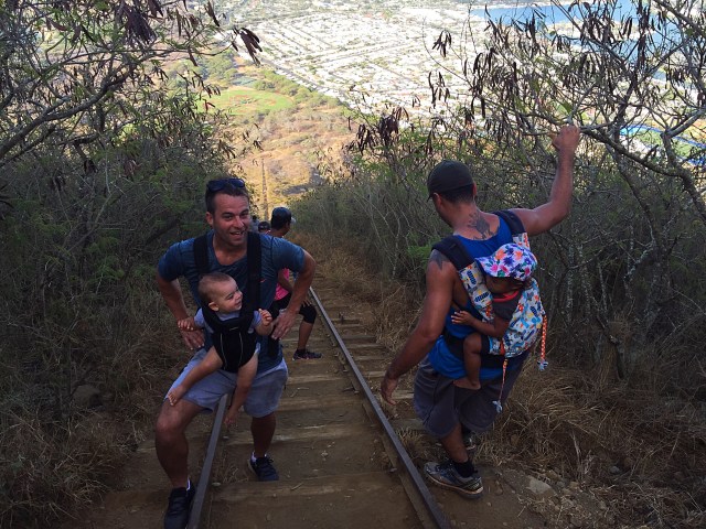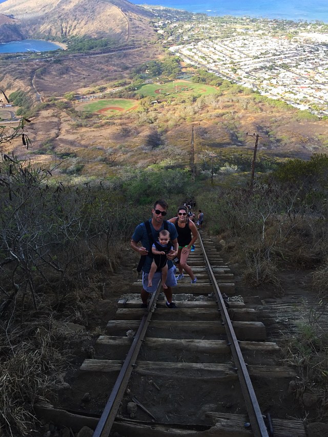 Ashleigh had googled another walk close to us which went up the old Koko Head railway track to the summit of Koko Head. Paul and Taj had decided to join us for this walk. We got there around 7.30am and it was pretty popular with people of all shapes and sizes heading for the trail. We looked up and could see all these stairs – how hard can it be! There are 1,048 stairs in total to the top which sits at 1,200 feet above sea level.